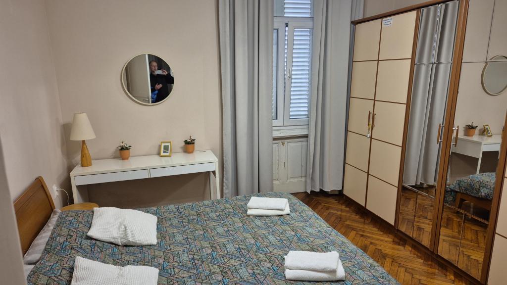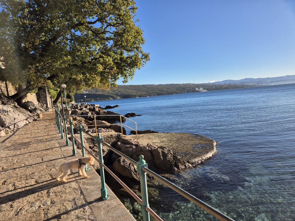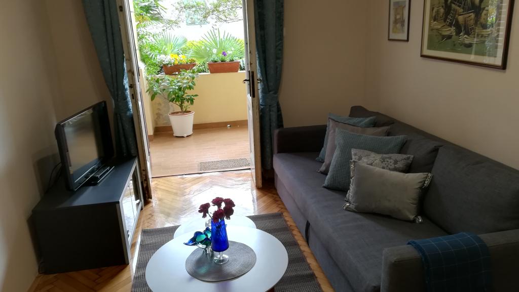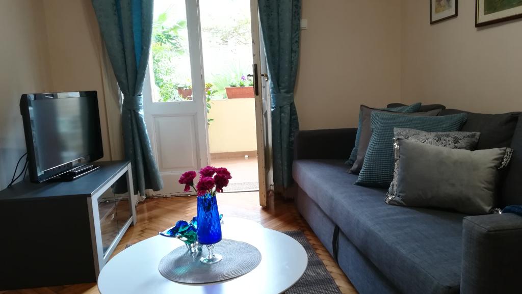 Apartament fermecător într-o vilă veche din centrul orașului Opatija. Apartamentul se află la 300 de metri de mare și de plajă. Este foarte spațios, având o suprafață de 58 de metri pătrați. Are un balcon acoperit cu vedere la mare, iar pe cealaltă parte a casei există o ieșire în grădină unde puteți sta și o masă și scaune. Apartamentul este unul dintre puținele din centrul orașului Opatija care are parcare privată gratuită. Piața din Opatija se află la 400 de metri, iar supermarketul Spar la 150 de metri de apartament. Apartamentul poate găzdui maximum 5 persoane. Dormitorul are un pat dublu mare și un pat single. Există o canapea extensibilă în living. Bucătăria este spațioasă și complet utilată.