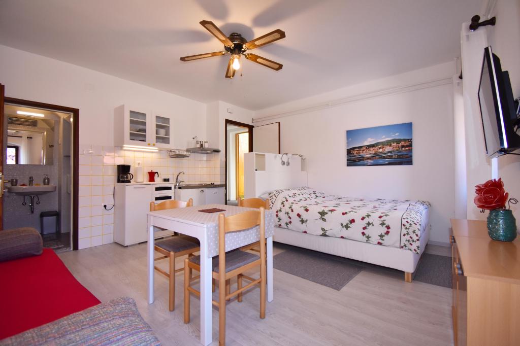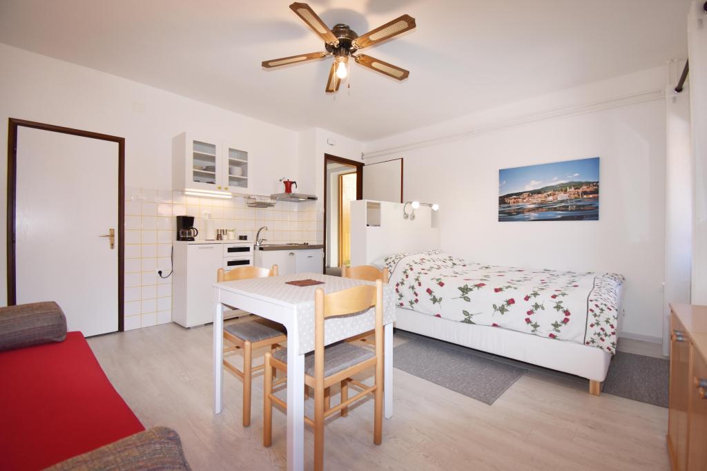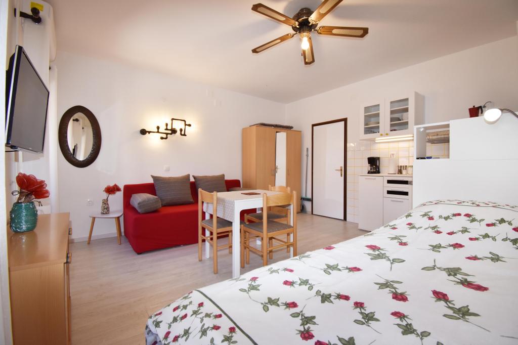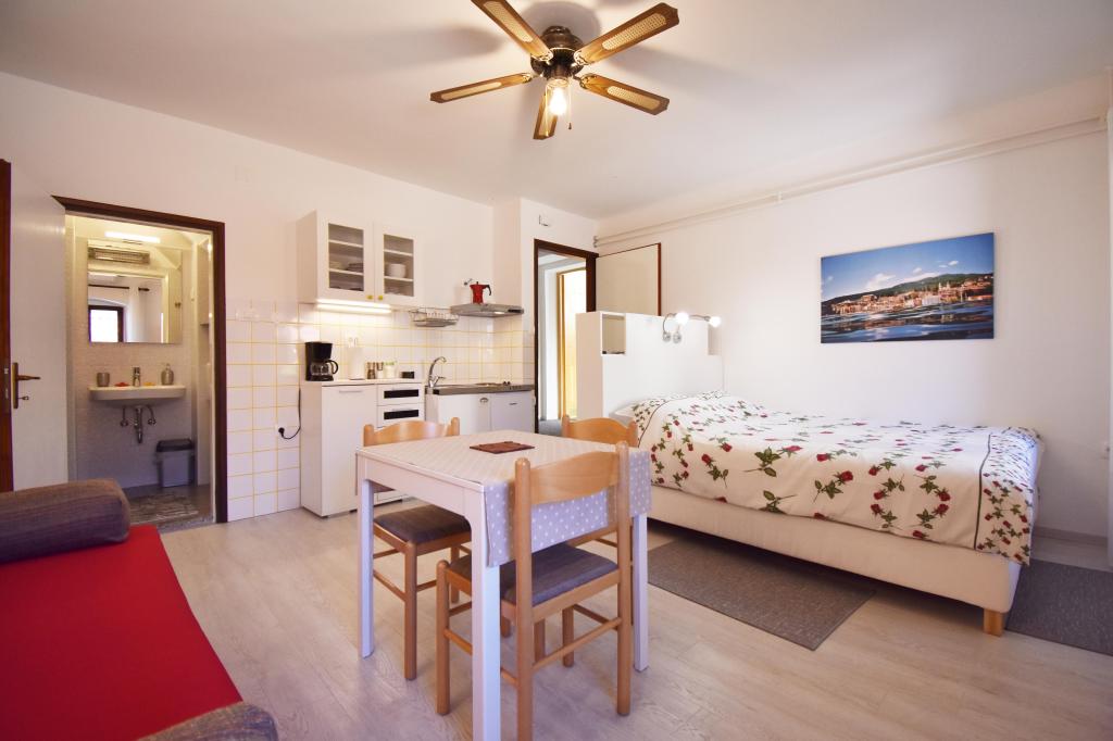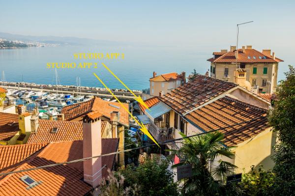 Două apartamente studio, fiecare cu un pat dublu și un pat suplimentar, sunt situate în Volosko, o zonă liniștită a Opatija, un fost sat de pescari. Sunt la doar 50 m de mare. În imediata lor împrejurimi se află magazine alimentare și câteva dintre cele mai bune restaurante de pe Riviera Opatija! Studio+1 ID:2710 constă dintr-o cameră cu un pat dublu și un pat suplimentar (o canapea extensibilă), o chicinetă - parte a camerei, o baie (duș/toaletă) și un balcon cu vedere la mare. Studio+1 ID:2711 are tot ce are Studio+1 ID:2710, cu excepția balconului și vedere la mare. In loc de balcon, Apartamentul Studio 2 are iesire pe terasa (fara vedere la mare).