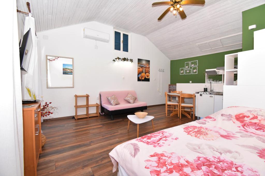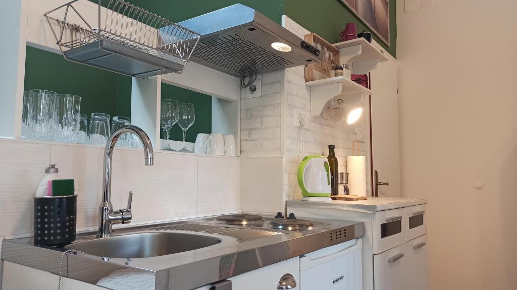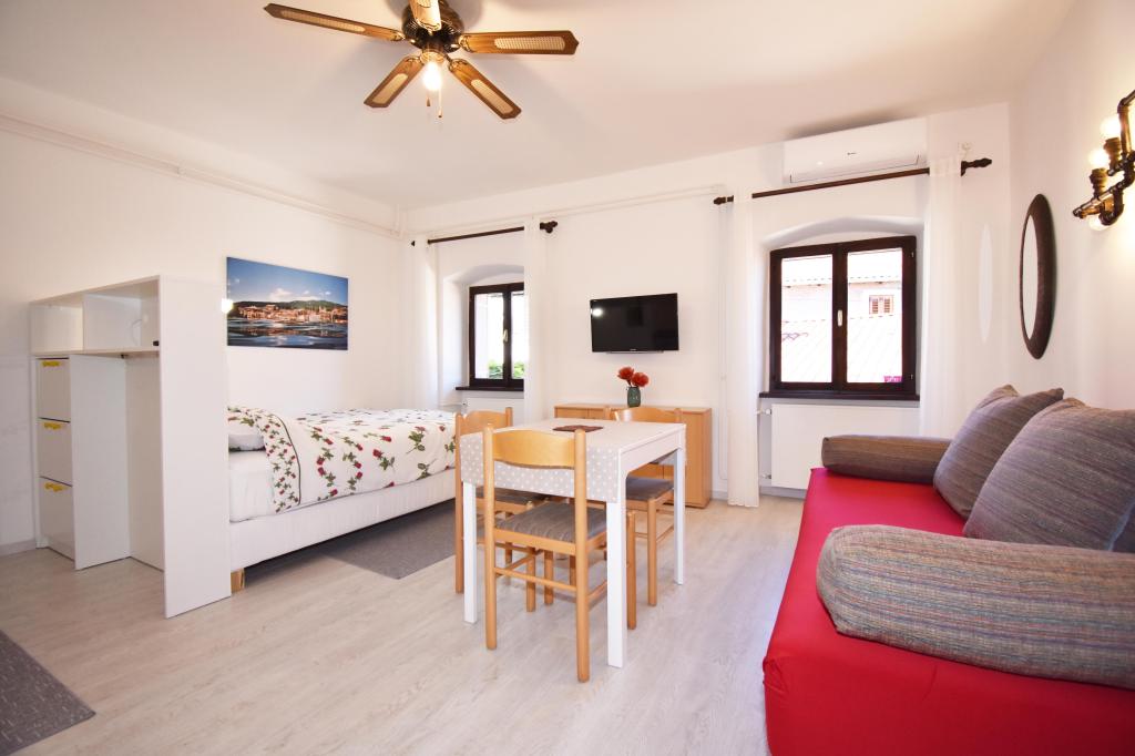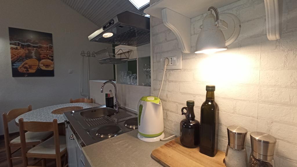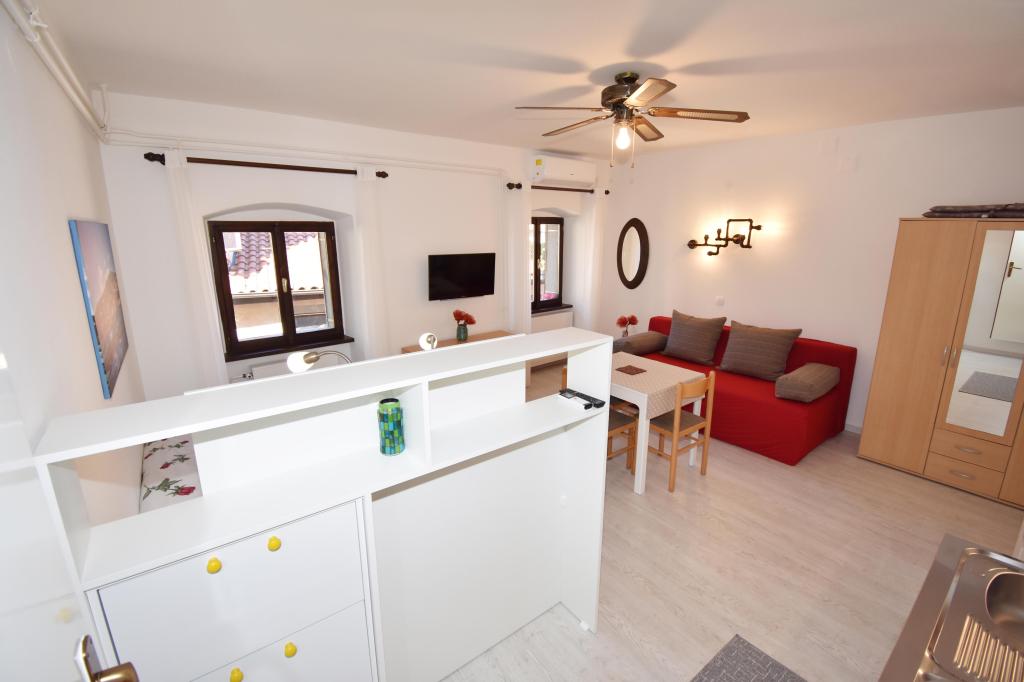 Două apartamente studio, fiecare cu un pat dublu și un pat suplimentar, sunt situate în Volosko, o zonă liniștită a Opatija, un fost sat de pescari. Sunt la doar 50 m de mare. În imediata lor împrejurimi se află magazine alimentare și câteva dintre cele mai bune restaurante de pe Riviera Opatija! Studio+1 ID:2710 constă dintr-o cameră cu un pat dublu și un pat suplimentar (o canapea extensibilă), o chicinetă - parte a camerei, o baie (duș/toaletă) și un balcon cu vedere la mare. Studio+1 ID:2711 are tot ce are Studio+1 ID:2710, cu excepția balconului și vedere la mare. In loc de balcon, Apartamentul Studio 2 are iesire pe terasa (fara vedere la mare).