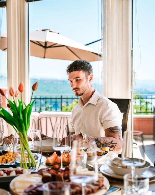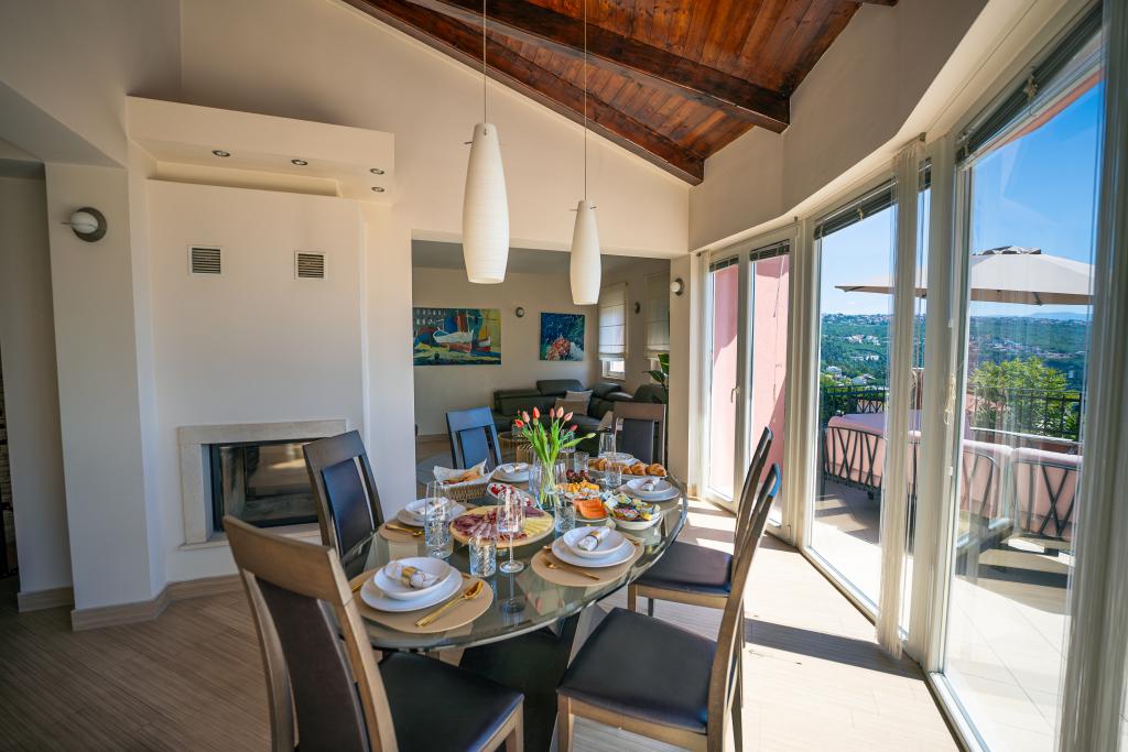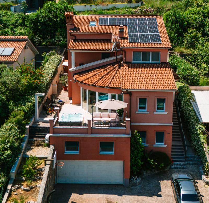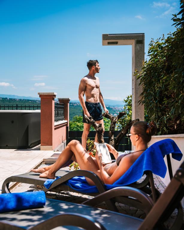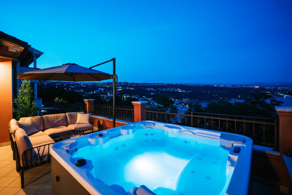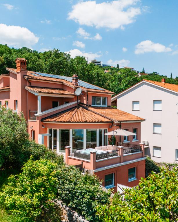 O mică bijuterie frumoasă și modernă situată pe Riviera Opatija. Casa a fost construita recent, asa ca totul este aproape ca nou. Designul interior este foarte frumos și a fost proiectat de soția mea Alexandra, designer de interior. Unul dintre cele mai uimitoare lucruri din această casă este priveliștea de 180 de grade de pe terasa Golfului Kvarner, coasta Istriei și insulele Krk și Cres. Pur uluitoare. O fotografie nu poate transmite frumusețea priveliștii. Rasariturile si apusurile sunt speciale, iar cinele pe terasa sunt unele dintre cele mai frumoase momente ale zilei. Vei dormi ca un bebeluș pentru că noaptea este foarte liniștit și plăcut și o adiere ușoară vine dinspre mare noaptea. Toate camerele sunt dotate cu aer condiționat. De asemenea, este important de menționat paturile super confortabile din toate camerele, precum și jacuzzi-ul interior și exterior și dușul de pe terasa cu o priveliște frumoasă. Riviera Opatija este cunoscută pentru clima sa micro-mediteraneană. Orașele din Riviera se întind de la satul de pescari Volosko, care se află la doar câteva minute de mers pe jos de casă, până la frumoasa Opatija, la care se poate ajunge pe jos. Unul dintre lucrurile de care trebuie să te bucuri este promenada de-a lungul mării Lungomare, care are aproximativ 15 km lungime. De-a lungul promenadei găsești o serie de plaje mici și golfuri mici în care poți înota, intercalate cu palate magnifice care datează din vremea Austro-Ungariei. Casa este la aproximativ 400 m de mai multe plaje din Volosko. Apa este foarte curată și albastru turcoaz. Multe locuri de pe Riviera sunt la o scurtă călătorie cu mașina și oferă multe experiențe gastronomice. Magazinele alimentare din apropiere au o selecție excelentă de produse alimentare, inclusiv pâine grozavă, vinuri locale, produse și carne. Restaurante de top sunt, de asemenea, la câteva minute de mers pe jos de casă. Mâncarea este uimitoare, în special se