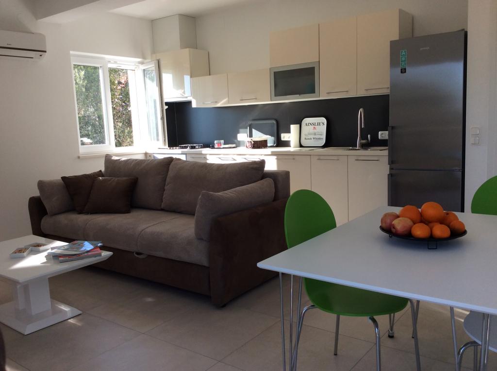Două apartamente sunt disponibile pentru închiriere la etajul superior, cu următoarele facilități: • Apartamente cu două dormitoare • Balcon cu vedere la mare • Living cu canapea extensibilă confortabilă • Bucătărie deschisă complet utilată (vezi dotări) • Sufragerie • Dormitor (un pat dublu) • Duș, toaletă • Aer condiționat • TV prin satelit • Internet WLAN • Hârtia igienică, săpunul, detergentul de vase sunt incluse în preț. • Prosoapele și lenjeria de pat se schimbă după 7 zile și sunt incluse în preț. Pe lângă numeroasele plaje și natura frumoasă, zona oferă numeroase oportunități pentru activități. Insula istorică Korčula („Micul Dubrovnik”) se află la doar 15 minute cu barca, regiunea viticolă de pe Pelješac oferă posibilitatea degustării de vinuri la crame, iar în apropiere de Viganj veți găsi windsurferi și kitesurferi. La intrarea în Orebic există un camping, unde vă puteți bucura de diverse activități sportive.