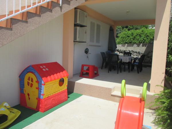 O parte din curte este proiectată pentru plajă cu șezlonguri. În curte există și un grătar care poate fi folosit pe termen nelimitat. Apartamentul este ideal pentru familii mai mari sau mai multi prieteni care doresc sa petreaca impreuna o vacanta anuala.