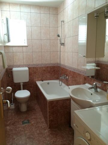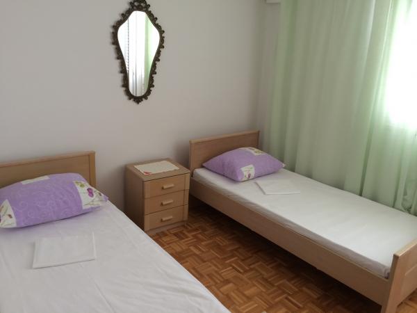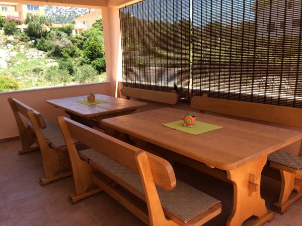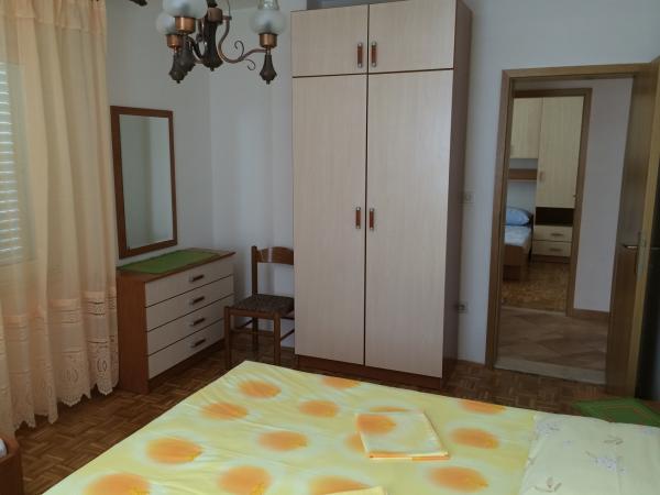 Există un apartament mare în casa familiei. Este complet utilat. Are intrare separata si parcare. Casa este situată la două minute de mers pe jos de plajă, mare, magazin și bancă. Apartamentul (8+2) este situat la primul etaj si este format din patru dormitoare (doua triple si doua duble), o bucatarie mare, doua bai cu toalete (una are masina de spalat rufe), un balcon mare si o terasa mare. Apartamentul este dotat cu aer conditionat (aer conditionat mare instalat pe hol), internet Wi-Fi, cuptor cu microunde, aragaz, cuptor, masina de spalat vase, masina de spalat rufe, frigider mare, toate vasele necesare si lenjerie de pat. Lenjeria de pat se schimbă o dată pe săptămână. Taxa, Wi-Fi, parcarea și utilizarea aerului condiționat sunt incluse în prețul de închiriere.