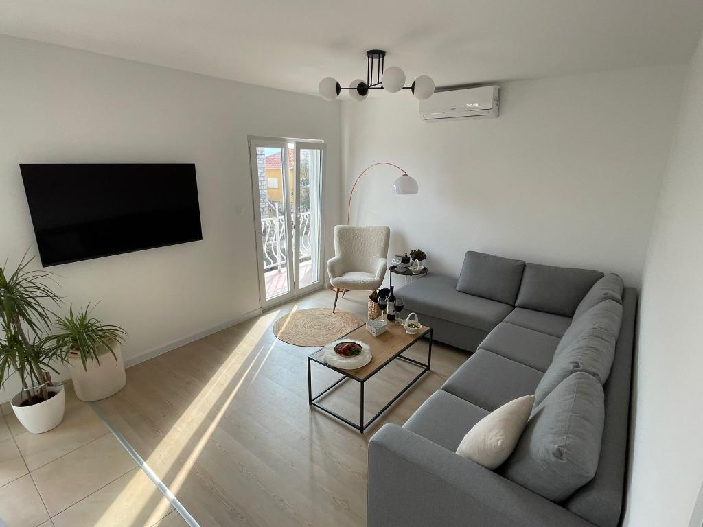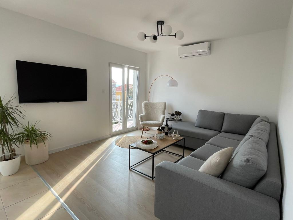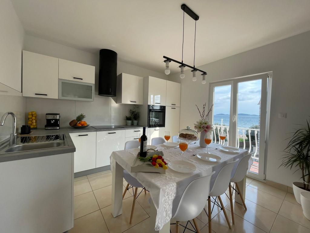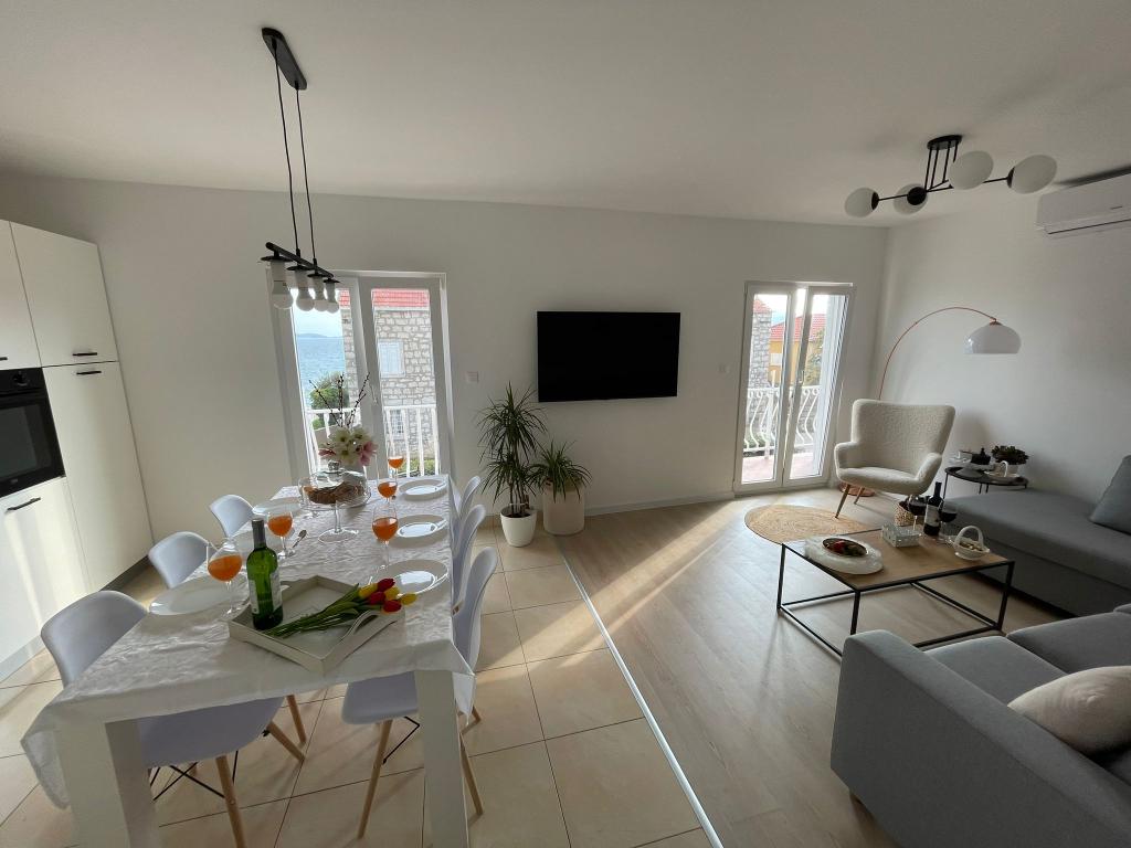 Un apartament spațios și bine întreținut cu vedere la mare, dotat cu toate facilitățile posibile - 2x TV cu conexiune la internet, Wi-Fi, aer condiționat în living și în dormitoare, bucătărie complet utilată și modernă [un mare plus pentru gheață filtru și mașină de spălat automată].Acces facil la apartament printr-un drum cu două sensuri, loc de parcare destul de mult și o terasă cu mobilier confortabil de grădină. Amplasarea in centrul orasului, la cativa pasi de plaja, debarcader si multe restaurante, plaseaza acest apartament in fruntea acestui oras. La sosire, ne-a întâmpinat o doamnă drăguță care ne-a ajutat în timpul șederii noastre și în apartamentul propriu-zis ne aștepta vin, tinctură și fructe proaspete și fursecuri în dormitor. Am amintiri foarte frumoase din sejurul meu și recomand cu sinceritate apartamentul persoanelor care prețuiesc confortul în vacanță.