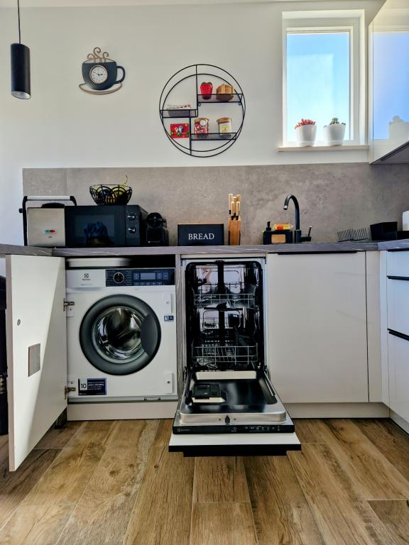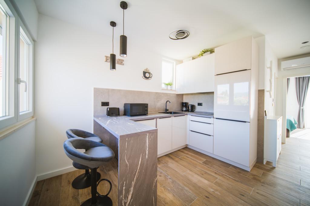 Apartamentul Sunset este un apartament modern și complet utilat pentru două persoane, situat în Orebić, pe frumoasa peninsulă Pelješac. Apartamentul este situat la primul etaj al unei case de familie și are o scară privată și o intrare separată, ceea ce asigură confort și intimitate în timpul șederii dumneavoastră. Casa se află la doar 80 de metri de mare, iar centrul orașului se află la câteva minute de mers pe jos, unde puteți găsi magazine, farmacii, restaurante și alte facilități. Apartamentul include: O bucătărie complet utilată cu zonă de luat masa. Un dormitor cu un pat dublu confortabil de 180 × 200 cm, un televizor și un birou cu monitor și tastatură - ideal dacă combinați vacanța cu munca la distanță. O baie modernă. Două balcoane, perfecte pentru relaxare cu o cafea de dimineață sau un apus de soare seara. Loc de parcare privat în fața casei. Pentru a vă face sosirea și mai plăcută, oaspeții vor primi un pachet de bun venit la sosire. Vă dorim o ședere plăcută la apartamentul Sunset Orebić.