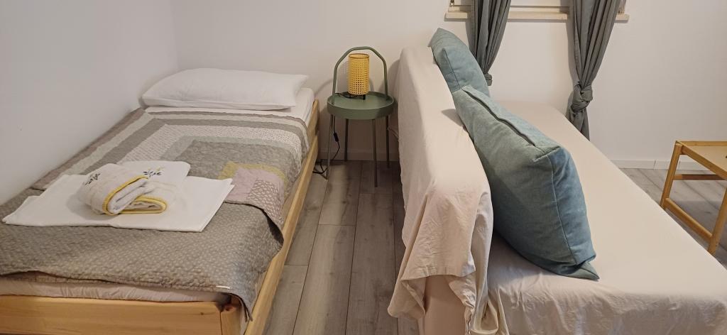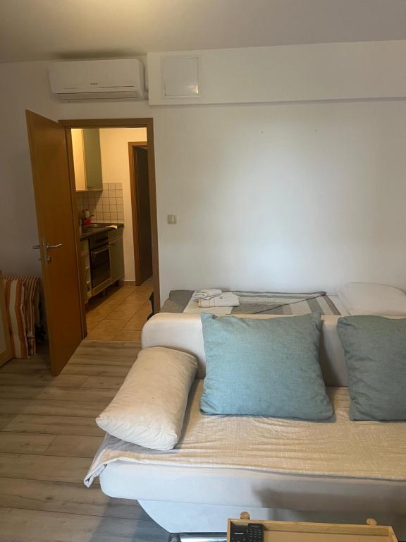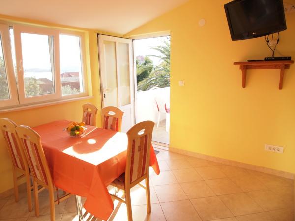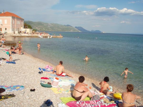 Apartament aproape de mare, aprox. 80 m de plaja, in centru. Cea mai apropiată plajă este cu pietriș. Apartamentul de la primul etaj este format din 2 dormitoare (fiecare camera are aer conditionat), bucatarie, SAT-TV, internet wireless, cada/toaleta, balcon cu vedere la mare. Parcare. Apartamentul de la parter este compus dintr-un dormitor, o bucatarie, un living separat cu o canapea unde pot dormi doi adulti, TV prin satelit, internet wireless, aer conditionat, o terasa mare, parcare. Vindem vinul nostru autohton de înaltă calitate la un preț bun. Ne aflăm la aproximativ 100 m de un magazin, brutărie, restaurant și la aproximativ 200 m de port unde există o barcă spre Korcula dacă doriți să vizitați insula Korcula. Călătoria cu barca durează 15 minute până la Korcula.