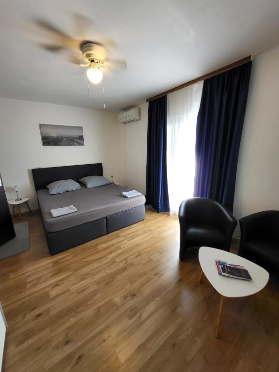 Citește mai mult Unități de cazarePrețul cazării include cazarea în apartament conform acordului anterior, precum și utilizarea tuturor facilităților destinate unui sejur plăcut și lipsit de griji. Oaspeții au la dispoziție parcare privată gratuită în cadrul unității, internet Wi-Fi gratuit și aer condiționat în apartament. Apartamentele sunt complet utilate și conțin tot ce este necesar pentru viața de zi cu zi: ustensile de bucătărie, tacâmuri, vase, prosoape și lenjerie de pat. Lenjeria de pat este schimbată o dată pe săptămână, iar apartamentul este curățat temeinic și pregătit pentru oaspeți în ziua sosirii. Plată: Pentru confirmarea rezervării, este necesar un depozit de 30% din prețul total al cazării, iar restul sumei se plătește la sosire. Este posibilă și plata sumei totale în avans. Check-in și check-out: Check-in-ul este posibil începând cu ora 15:00, check-out-ul este până la ora 10:00 în ziua plecării. Capacitatea apartamentului: Numărul maxim de persoane per apartament este de 4, ceea ce îl face o alegere ideală pentru familii sau grupuri mai mici.