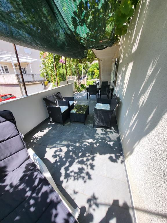 Suntem situați în centrul orașului Orebić și toate facilitățile necesare sunt la câțiva pași. Plaja este la doar câteva minute de mers pe jos. La o distanță de 50 de metri se află un magazin, o brutărie, o farmacie, o cafenea și un fast-food. Și există, de asemenea, alte facilități, cum ar fi restaurante și alte activități în apropiere. Această proprietate cu grădină oferă cazare cu aer condiționat, balcon și terasă și vedere la mare. Apartamentul include parcare gratuită, aer condiționat, TV prin satelit și Wi-Fi. De asemenea, are o bucătărie complet utilată cu toate accesoriile necesare. Casa este situată pe o stradă liniștită, cu vedere la mare, grădină și stradă. Apartament AP1 (ID: 71816): Apartamentul are o suprafață de 61 m2 + terasă 16 m2 + balcon 7 m2. Apartamentul are o baie, 2 dormitoare, o sufragerie și o bucătărie. Apartament AP2 (ID: 71815): Apartamentul are o suprafață de 61 m2 + terasă 4 m2 + balcon 7 m2. Terasa și balconul sunt acoperite cu copertine pentru umbra necesară și dotate cu mobilier de exterior. Apartamentul are o baie, 2 dormitoare, o sufragerie și o bucătărie.