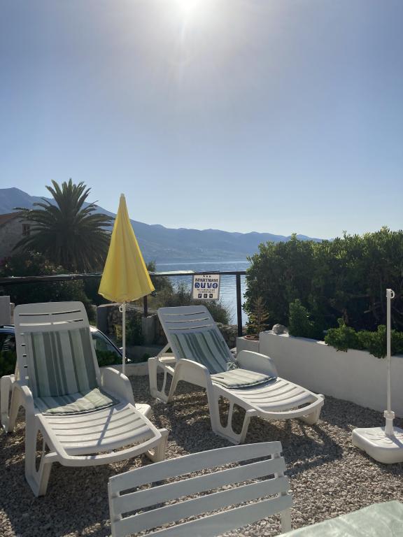 Apartamentele Ruvo sunt situate la intrarea în Orebić, la 10 m de mare și la 30 m de plaja cu nisip din Trstenica. Apartamentele au capacitate; 6 1, 4, 2 1, 2 și 2 persoane. Parcul frumos și mare din fața casei este potrivit pentru familiile cu copii.