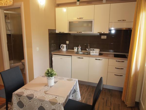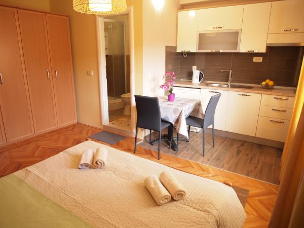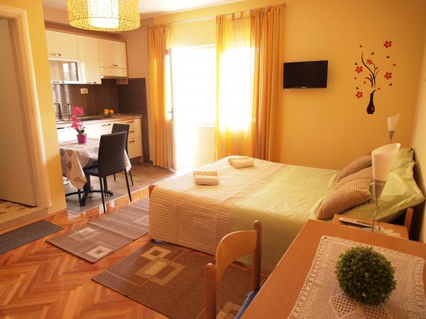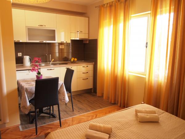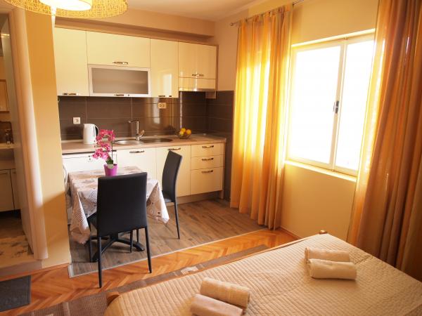 Facilitatea este situat la cca. 70 m de la, poziția ideală la mare și plaje de nisip din casă, în centrul orașului. Un loc liniștit. Toate apartamentele au aer condiționat, TV prin satelit, Wi-Fi (internet). Aproape de magazine, brutării ...