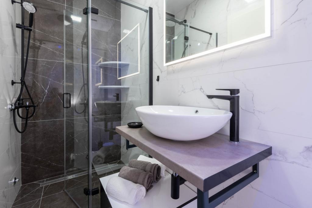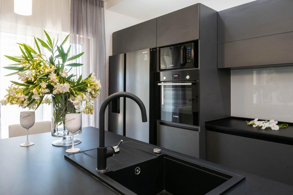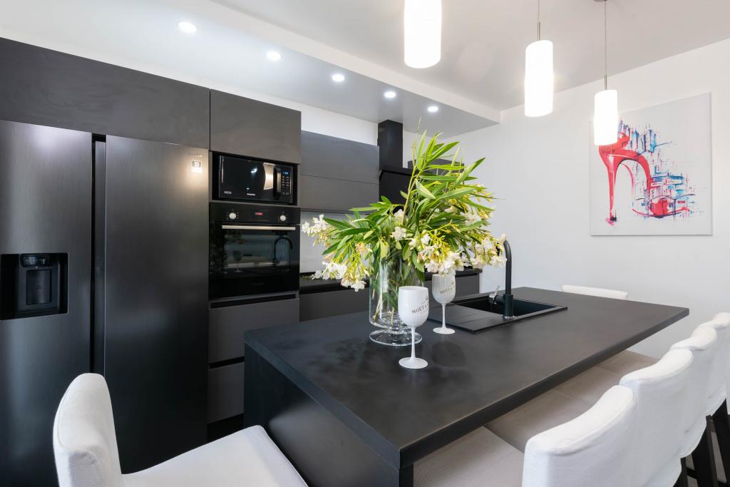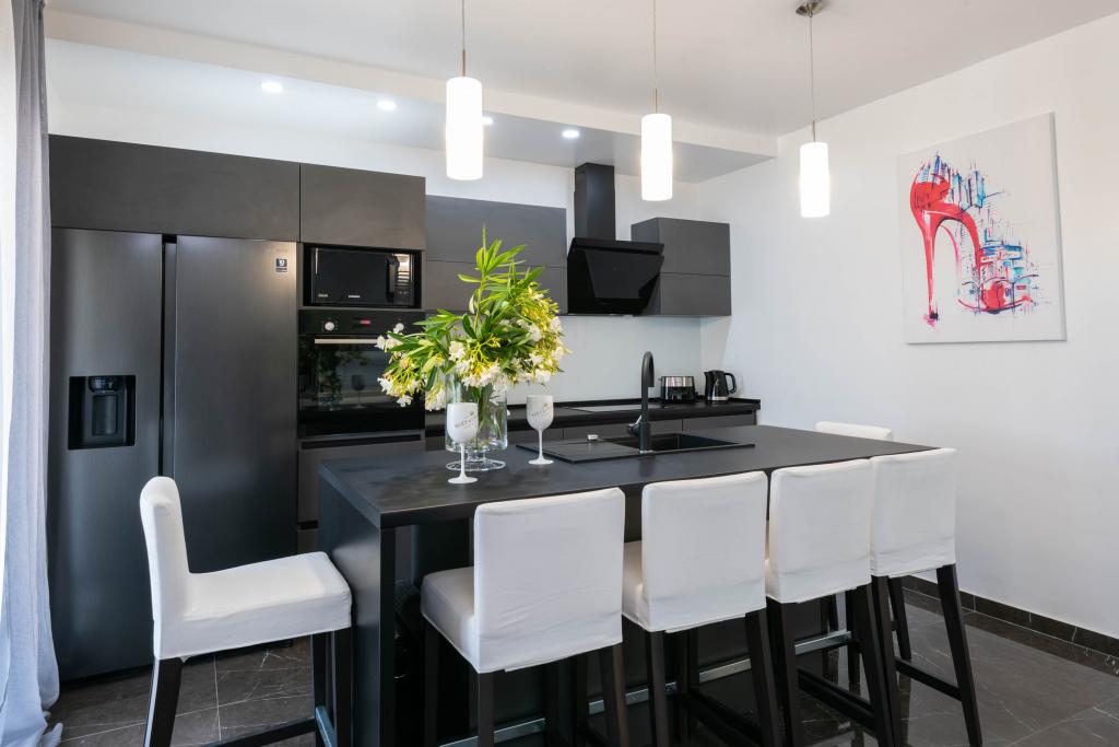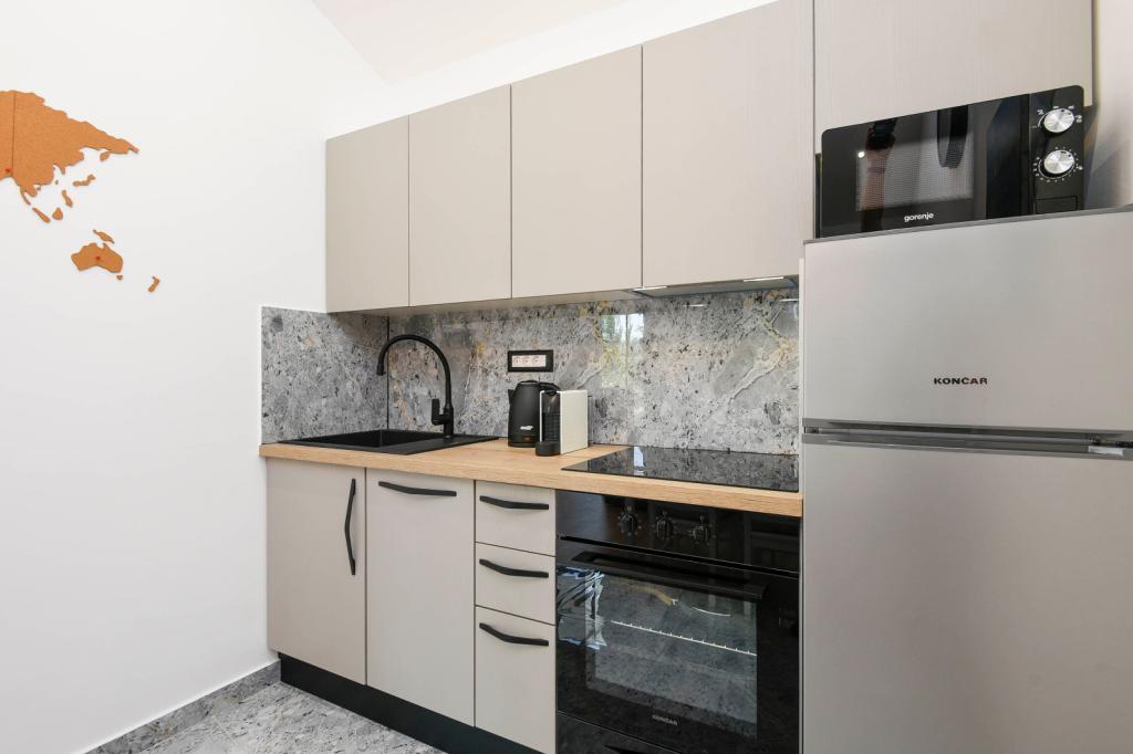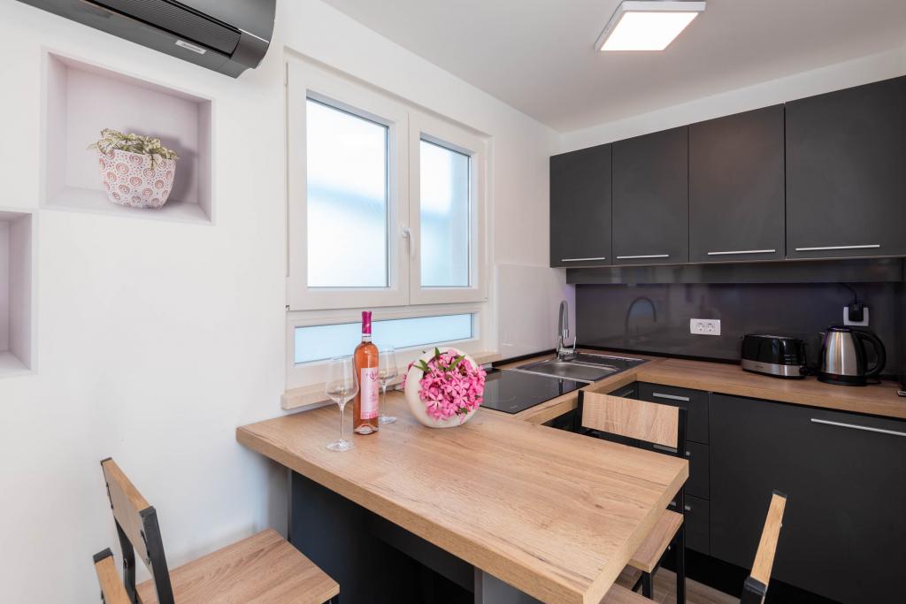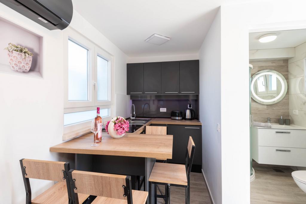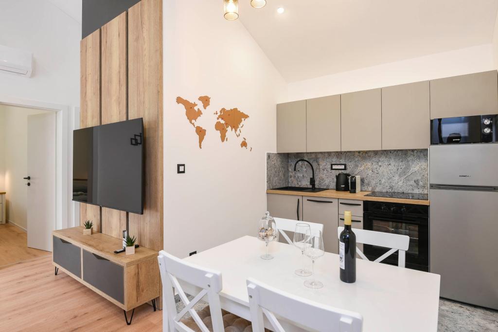 Apartamente decorate modern și complet echipate, cu vedere la mare. Aproape de plajă, magazine și restaurante.