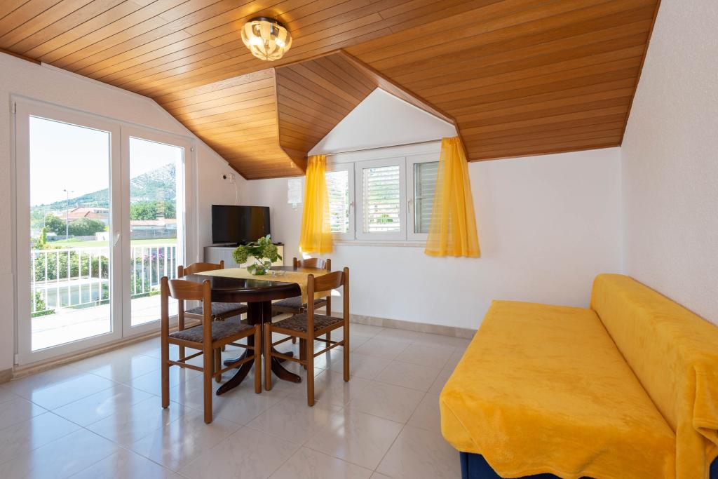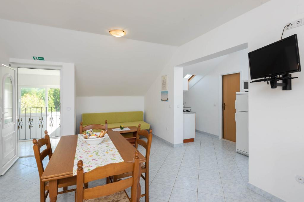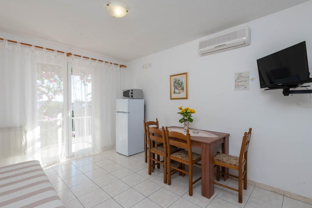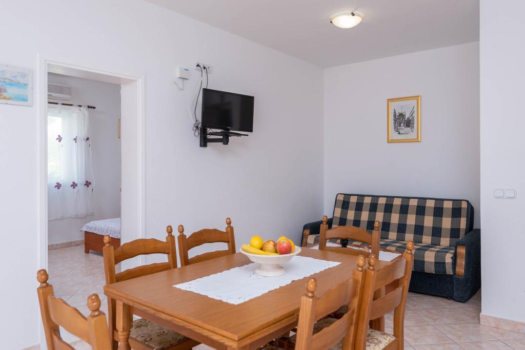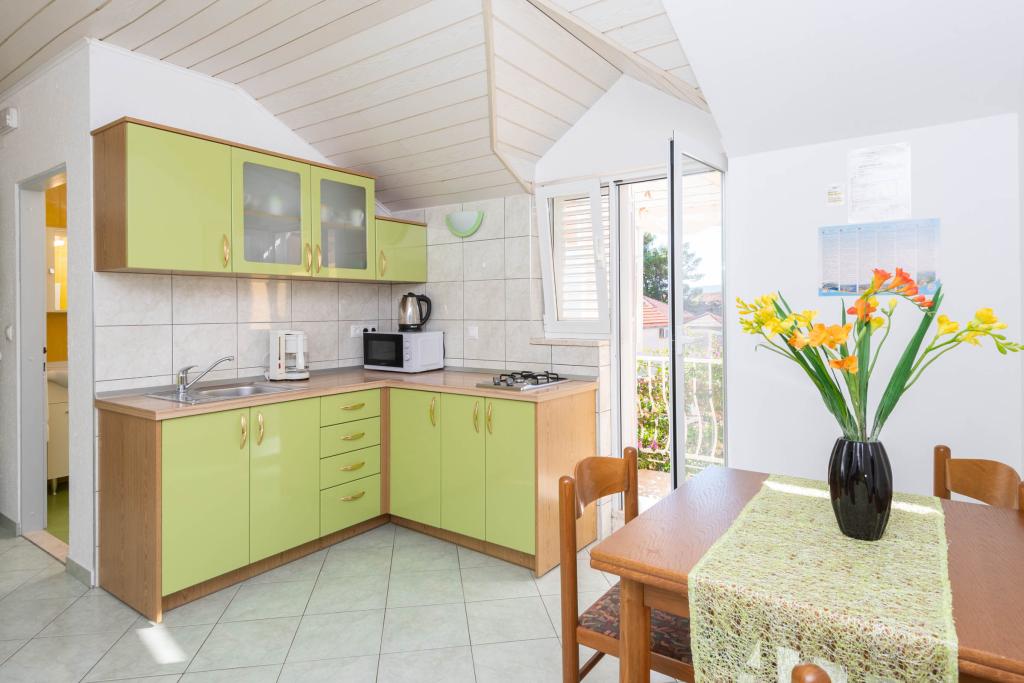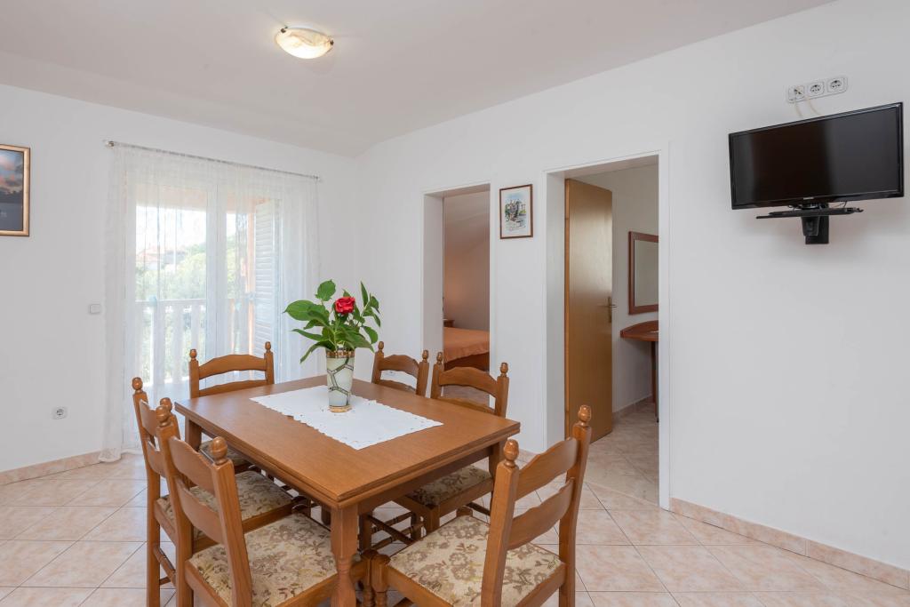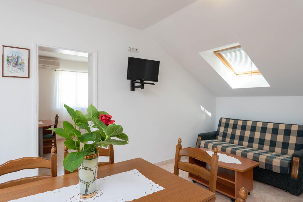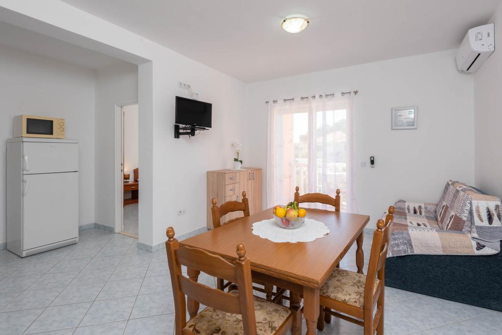 „Villa Melita” este situată chiar lângă mare și de-a lungul unei promenade liniștite. Acest loc este potrivit în special pentru toți cei care au nevoie de o pauză. Casa are o grădină frumoasă cu vegetație mediteraneană, unde există o piscină de 32 m2 cu 14 șezlonguri. De asemenea, vă stau la dispoziție un grătar. Parcarea noastră privată pentru fiecare apartament este, de asemenea, în apropiere. Toate apartamentele noastre au aer condiționat, WiFi gratuit, TV prin satelit, bucătărie complet utilată, baie și terasă privată. Prosoapele de baie și lenjeria de pat sunt, de asemenea, incluse. Casa se află la câțiva pași de mai multe restaurante, cafenele, magazine și brutării pentru toate nevoile zilnice. Cel mai important, plaja principală a orașului, Trstenica, este la doar 40 de metri distanță.