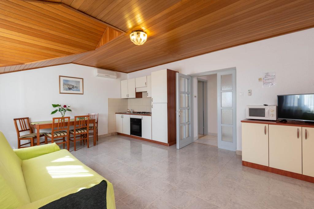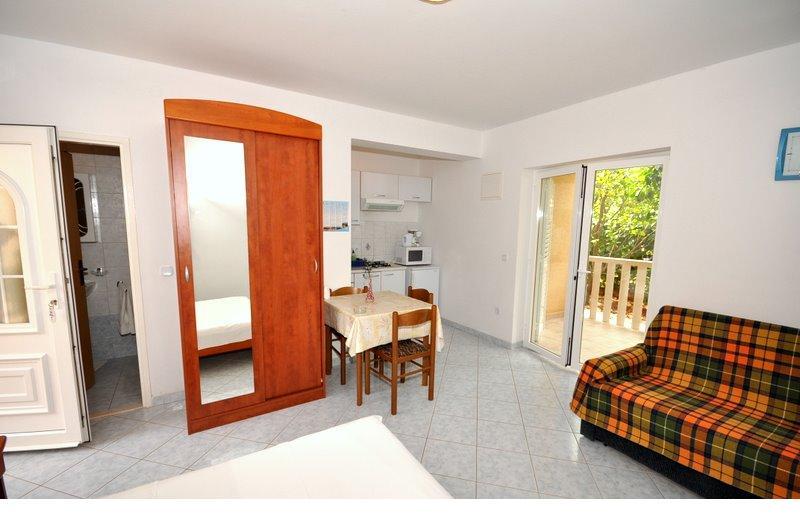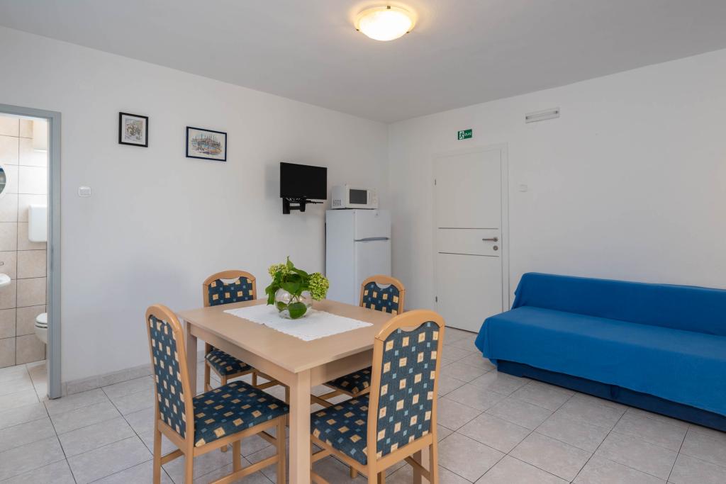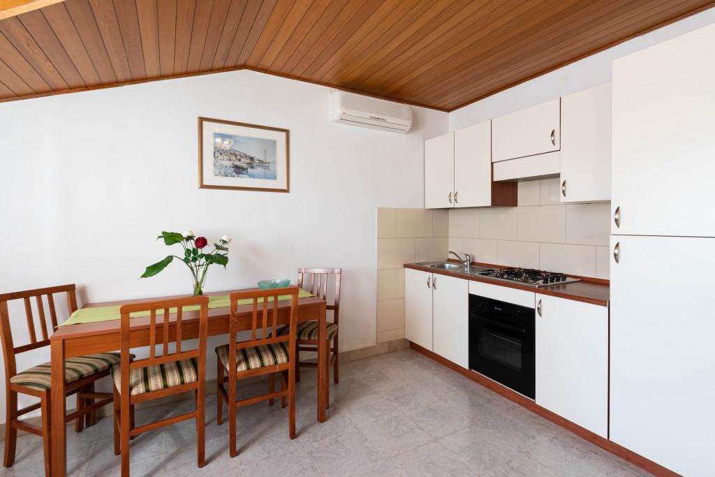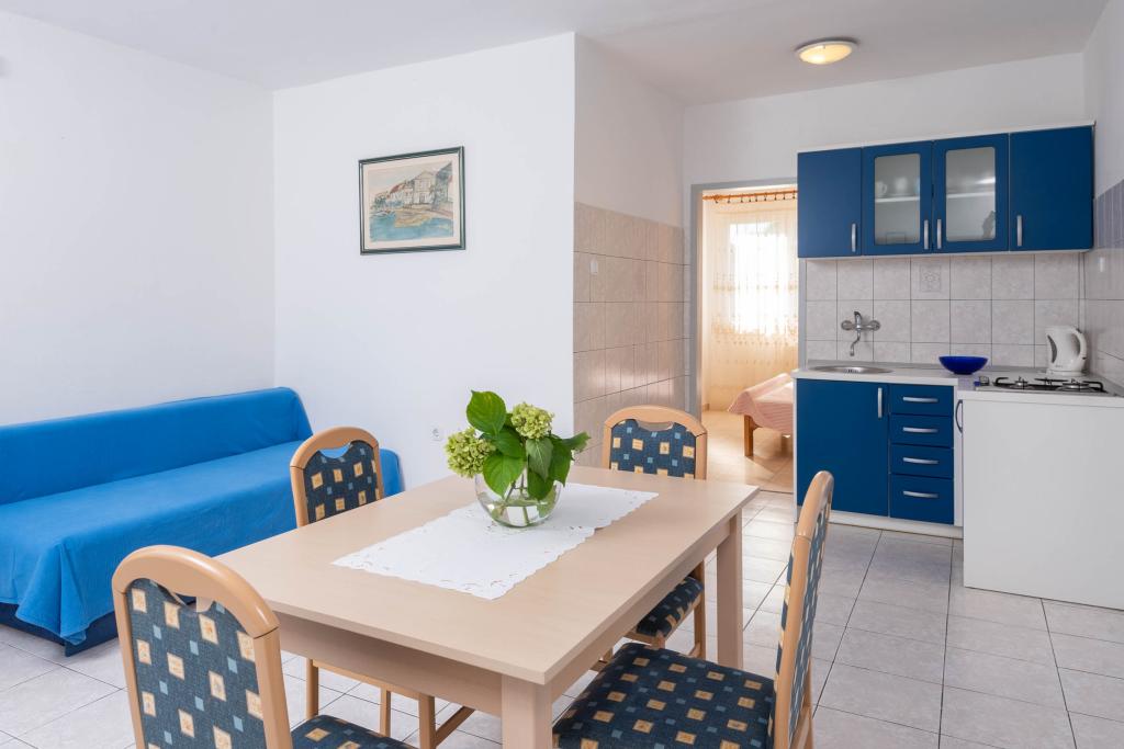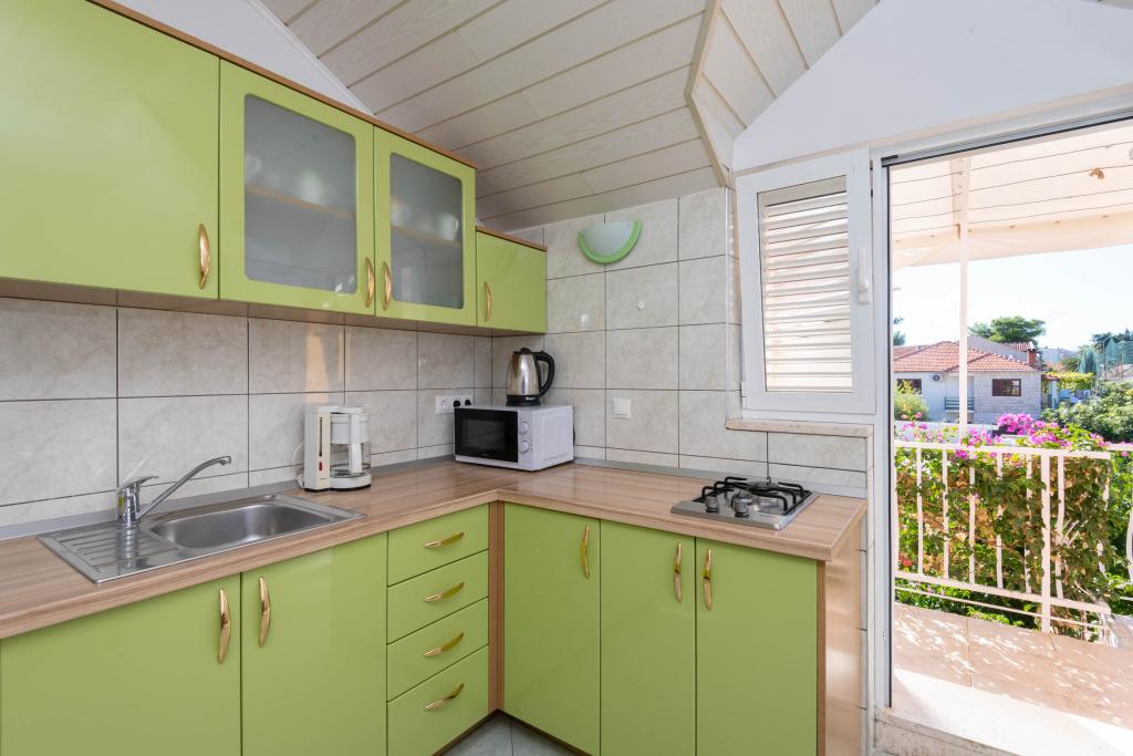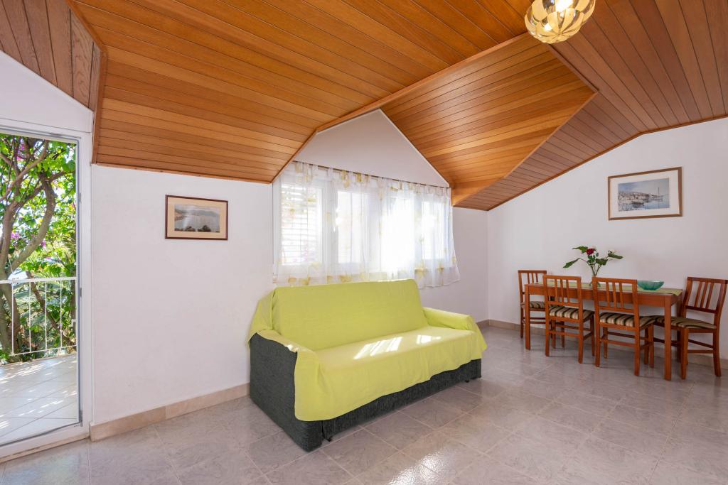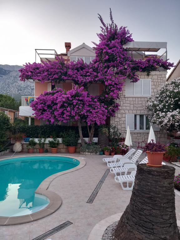 „Villa Melita” este situată chiar lângă mare și de-a lungul unei promenade liniștite. Acest loc este potrivit în special pentru toți cei care au nevoie de o pauză. Casa are o grădină frumoasă cu vegetație mediteraneană, unde există o piscină de 32 m2 cu 14 șezlonguri. De asemenea, vă stau la dispoziție un grătar. Parcarea noastră privată pentru fiecare apartament este, de asemenea, în apropiere. Toate apartamentele noastre au aer condiționat, WiFi gratuit, TV prin satelit, bucătărie complet utilată, baie și terasă privată. Prosoapele de baie și lenjeria de pat sunt, de asemenea, incluse. Casa se află la câțiva pași de mai multe restaurante, cafenele, magazine și brutării pentru toate nevoile zilnice. Cel mai important, plaja principală a orașului, Trstenica, este la doar 40 de metri distanță.