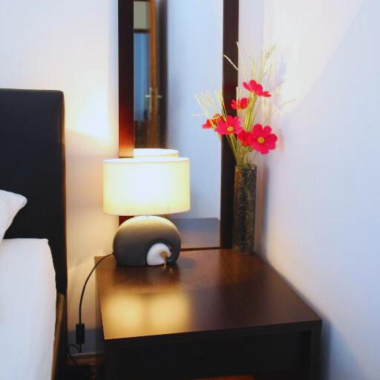 Va oferim un apartament nou renovat intr-o zona linistita a orasului. O ședere plăcută pentru angajații companiei și familiile. Suprafata de 95m2, spatioasa si confortabila. Este compus din două dormitoare, un living, o bucătărie cu o sufragerie care se deschide spre o terasă mare și spațioasă. Dormitoarele conțin 1 pat dublu, 3 paturi de o persoană pentru o persoană și există un pat suplimentar în living. Apartamentul dispune de aer conditionat, internet, parcare privata si o bucatarie complet utilata. Sala City Garden si toate facilitatile necesare unui sejur placut sunt situate langa cladire. Pentru toate informațiile suplimentare, sunați.