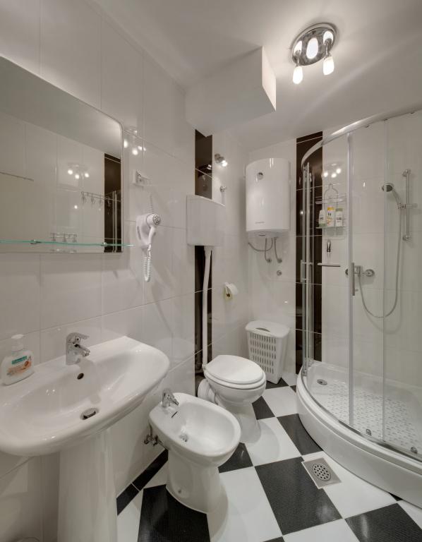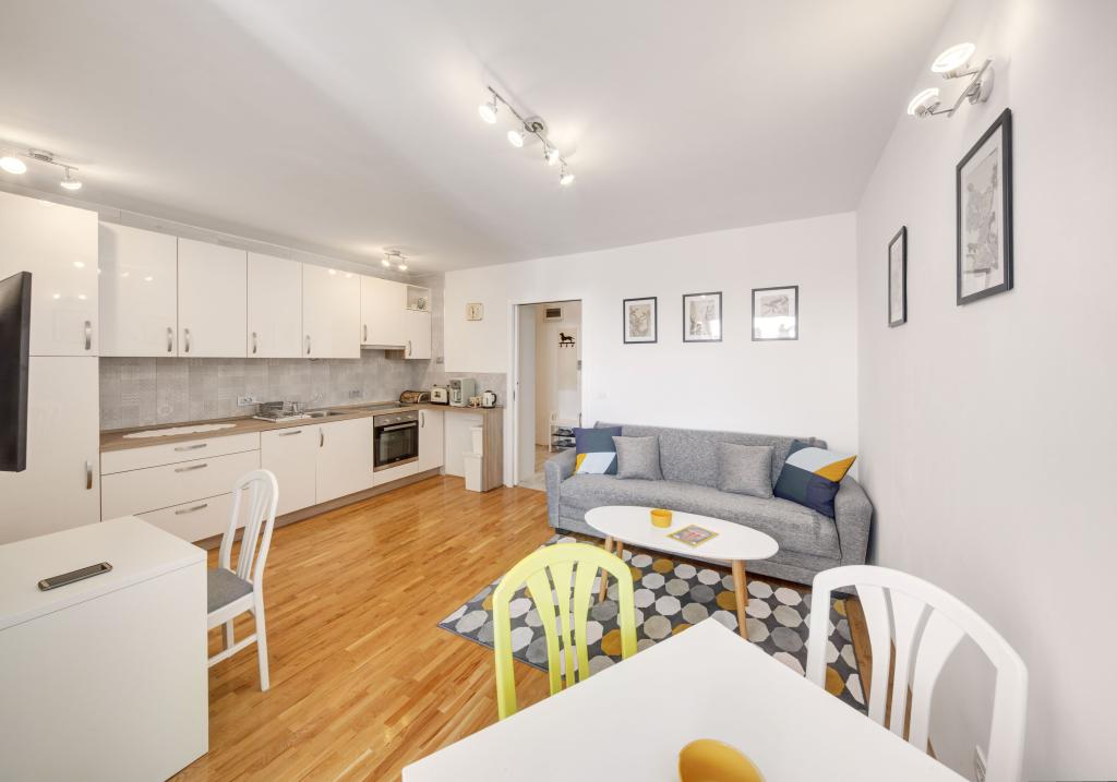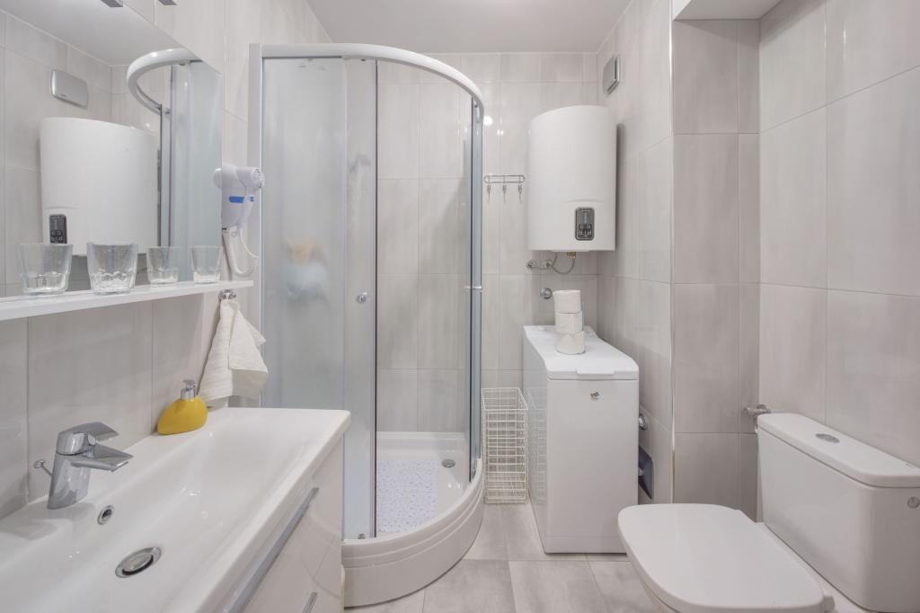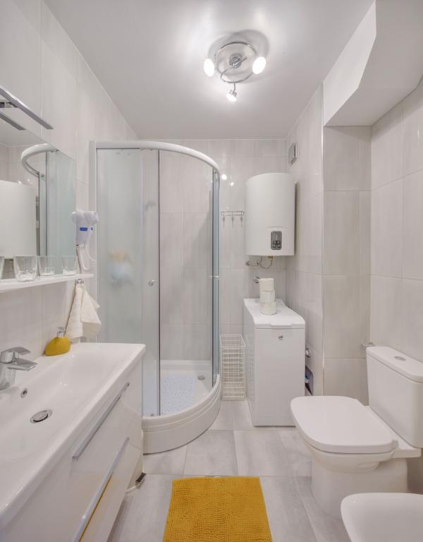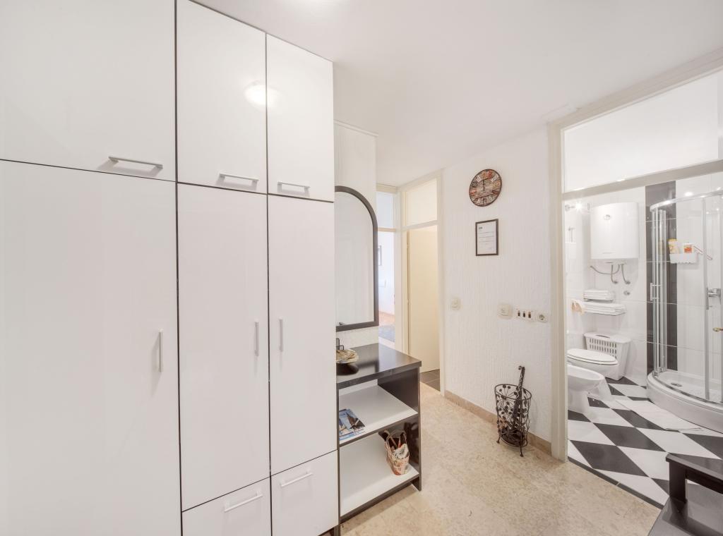 Apartamentele sunt dotate cu toate electrocasnicele necesare pentru a vă face șederea cât mai plăcută. Livingul are aer conditionat, televiziune prin cablu si internet wireless. Bucătăria este dotată cu aragaz cu hotă și cuptor, mașină de spălat vase, frigider, cuptor cu microunde, aparat de cafea, încălzitor de apă, prăjitor de pâine și toate ustensilele de bucătărie necesare. În baie, aveți la dispoziție un uscător de păr, prosoape și accesorii de baie. Dacă este necesar, puteți folosi mașina de spălat, masa de călcat și fierul de călcat. La cerere, se pot pregăti un scaun și un pat suplimentar pentru copii mici. Intrând în apartament, devii utilizator și toate comentariile tale sunt valoroase pentru noi, deoarece ajută să-i facă pe următorii oaspeți mai mulțumiți. Mai ales dacă a existat o defecțiune la echipament, dispozitive sau o defecțiune în stocare. Vă rugăm să ne anunțați imediat pentru a ne asigura că sunteți mulțumit de serviciile noastre și de șederea dumneavoastră în apartament cât mai curând posibil.