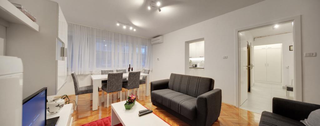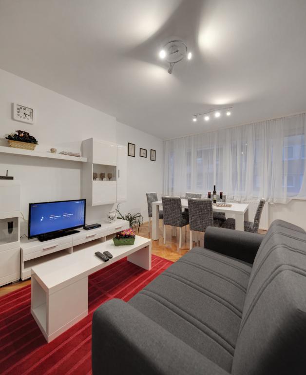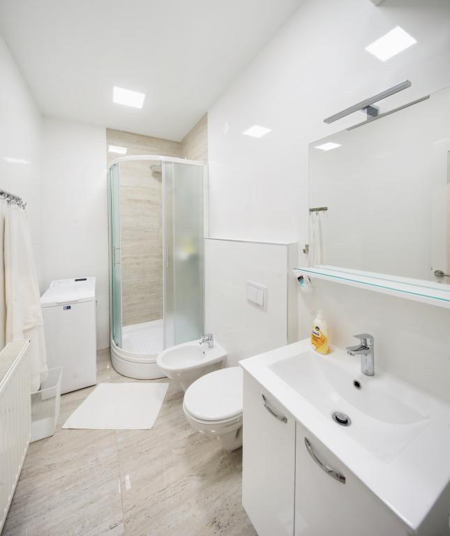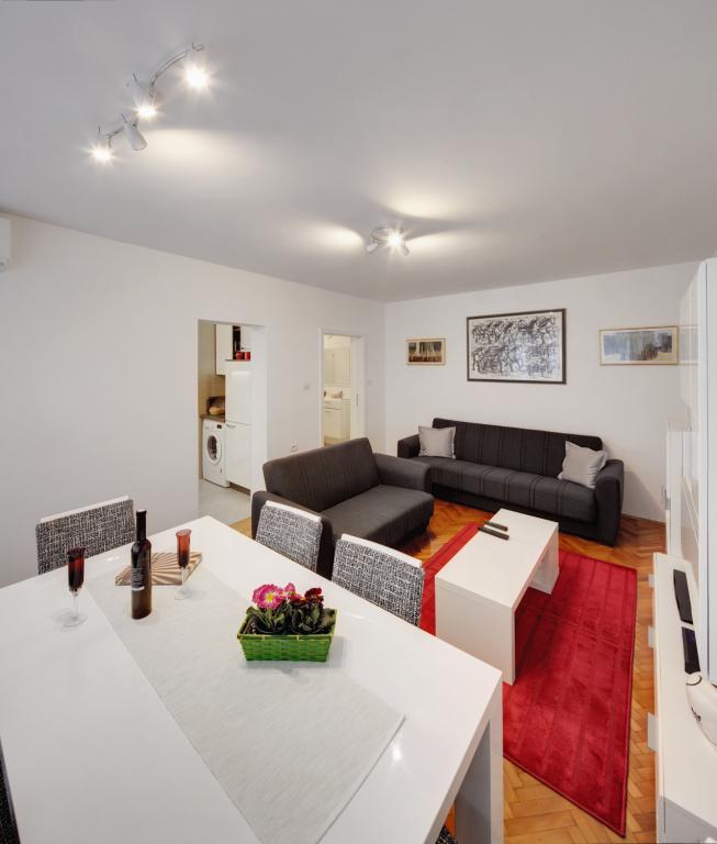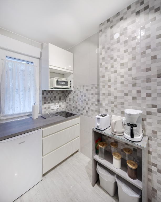 Apartamentele sunt dotate cu toate electrocasnicele necesare pentru a vă face șederea cât mai plăcută. Livingul are aer conditionat, televiziune prin cablu si internet wireless. Bucătăria este dotată cu aragaz cu hotă și cuptor, mașină de spălat vase, frigider, cuptor cu microunde, aparat de cafea, încălzitor de apă, prăjitor de pâine și toate ustensilele de bucătărie necesare. În baie, aveți la dispoziție un uscător de păr, prosoape și accesorii de baie. Dacă este necesar, puteți folosi mașina de spălat, masa de călcat și fierul de călcat. La cerere, se pot pregăti un scaun suplimentar și un pat pentru copii mici. Intrând în apartament, devii utilizator și toate comentariile tale sunt valoroase pentru noi, deoarece ajută să-i facă pe următorii oaspeți mai mulțumiți. Mai ales dacă a existat o defecțiune a echipamentelor, dispozitivelor sau o defecțiune în stocare. Vă rugăm să ne anunțați imediat pentru a ne asigura că sunteți mulțumit de serviciile noastre și de șederea dumneavoastră în apartament cât mai curând posibil.