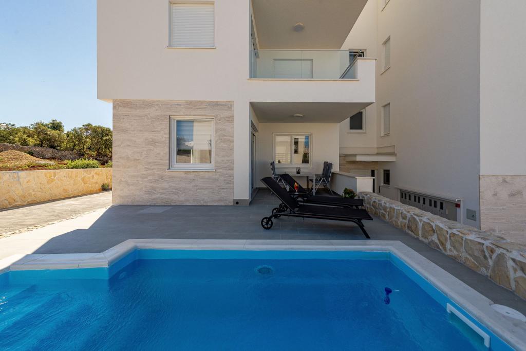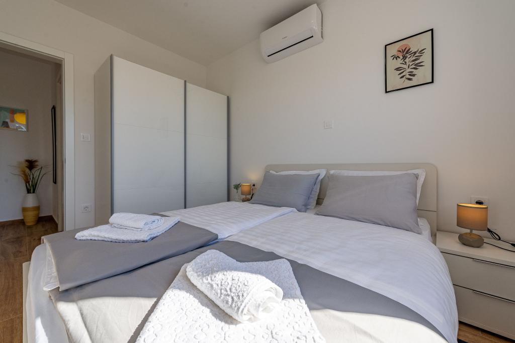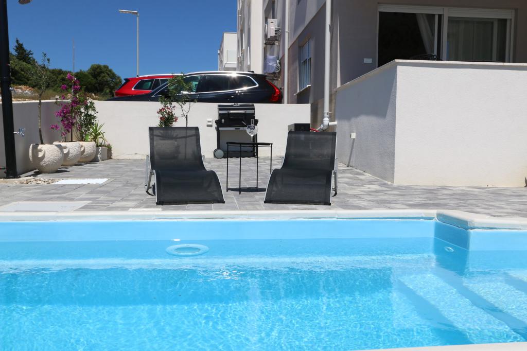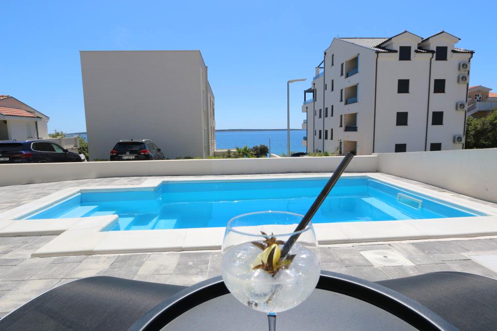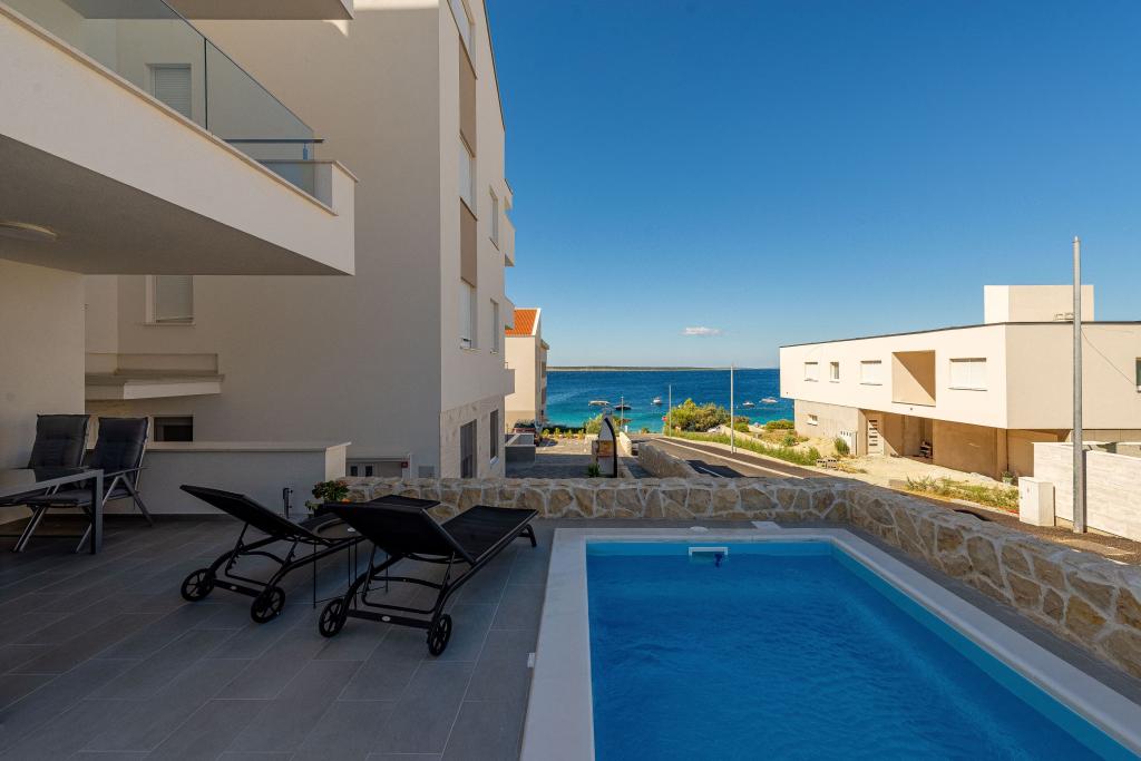Vedere la delfini cu o piscină lângă plajă este un apartament modern cu o piscină privată cu vedere la mare doar pentru uzul dumneavoastră. Este situat intr-o zona linistita din Mandre pe insula Pag, la doar 40 m de prima plaja. Apartamentul cu vedere la delfin este format din două dormitoare cu paturi duble, baie cu cabină de duș, bucătărie complet utilată, living și sufragerie. Apartamentul dispune de 2 locuri de parcare in curte, precum si de o terasa mobilata cu piscina si o gradina cu gradina si gratar. Terasa ofera o priveliste frumoasa asupra marii, iar vizitatorii nostri frecventi sunt delfinii. Dolphin view II este format dintr-un dormitor cu un pat dublu și un alt dormitor cu două paturi separate care pot fi combinate într-un pat dublu, o bucătărie complet utilată, un living și o sufragerie. Apartamentul are 1 loc de parcare, o terasa mobilata cu piscina doar pentru tine. Restaurante și magazine sunt la doar 10 minute de mers pe jos de apartamentul din centrul orașului, unde puteți găsi tot ce aveți nevoie pentru o vacanță plăcută.