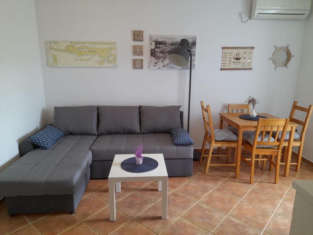 Apartament complet utilat intr-un loc linistit Mandre, pe insula Pag. Aproape de plaja, parcare, aer conditionat, gratar, vedere la mare, plase de tantari, wifi, TV satelit, tv.