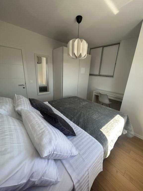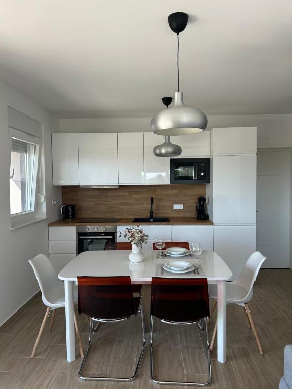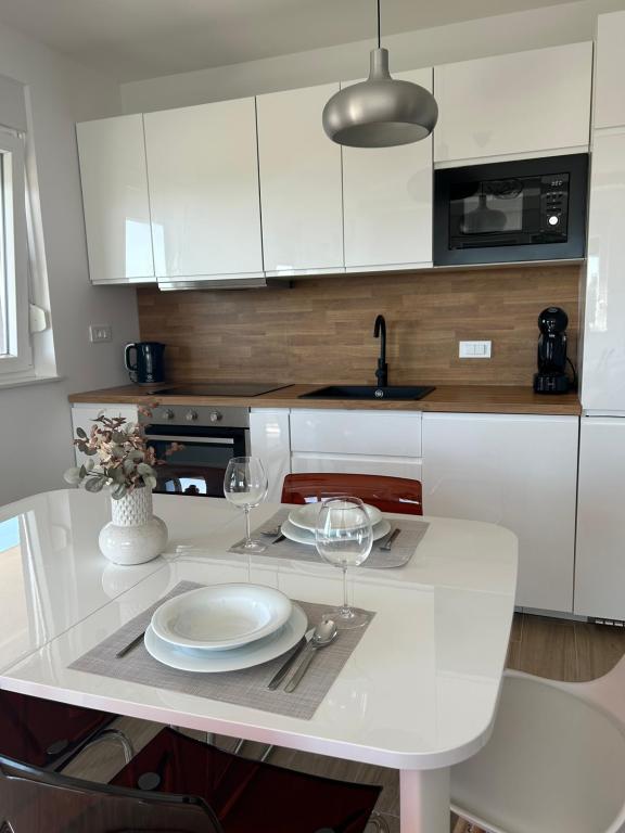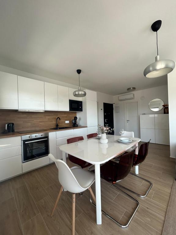 Apartament recent renovat, bucătărie complet utilată cu electrocasnice. Spațiu climatizat. Două dormitoare mari cu două paturi foarte confortabile, saltele și perne confortabile. O terasă mare cu vedere la mare, cea mai frumoasă dimineața pentru a savura cafea și seara pentru a vă relaxa după înot. Living mare, televizor mare cu satelit. Plaja și marea sunt chiar în apropiere. Recomandat tuturor.