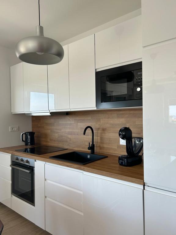 Apartamentul este nou, confortabil echipat, spațios, perfect pentru o vacanță la doar 100 de metri de plajă. Bucătăria este dotată cu aparat de cafea, fierbător, cuptor cu microunde, cuptor, mașină de spălat vase, TV mare prin satelit și mașină de spălat rufe. Strada este curată și liniștită. Marea este curată și caldă. Perfect pentru o vacanță. Vă recomandăm.