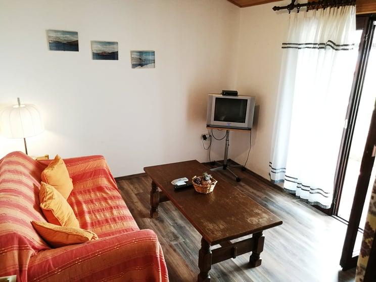 Apartamentul este situat la etajul 1 al unei case familiale din Mandre, pe insula Pag. Este compus din două dormitoare cu paturi duble, un living, bucătărie, baie și o toaletă mică. Apartamentul are, de asemenea, o logie de 7 m2 cu vedere la oraș, la mare și la insulele Maun, Skrda, Olib și Silba. În curte există un șemineu, masă și scaune, un duș și șezlonguri pentru o odihnă de după-amiază departe de agitația zilnică a cafenelelor și plajelor. Suntem la 200 m de mare si parcare este langa casa.