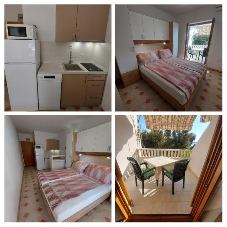 Mobilat complet apartamente într-o casă pe malul mării. Apartamentele sunt situate la doar 20 m de plaja si 5 minute de mers pe jos de-a lungul coastei de oraș și port Mandre. Casa are o cazare ideal, la doar 20 m de mare. Apartamentele Ssvi au terase cu vedere la mare.