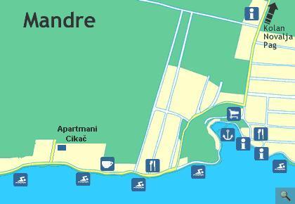 Mandre - nostru oraș mic situat în apropiere de mare și Pag Novalja. Locație excelentă a proprietății - aproape de plaja, la aproximativ 100 de metri, la aproximativ 500 de metri de centru. Apartament standard bun, cu o terasă mare cu vedere la mare. Proprietarii - foarte frumos. Acesta a fost al saselea vacanță în Croația, pe insula Pag al treilea și al doilea în Mandre. Sunt convins că, din nou, am ajuns la Apartmani Cikac.
