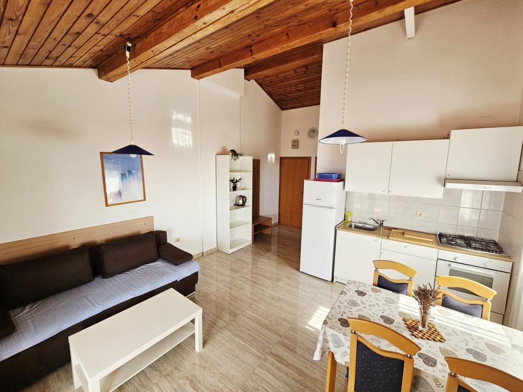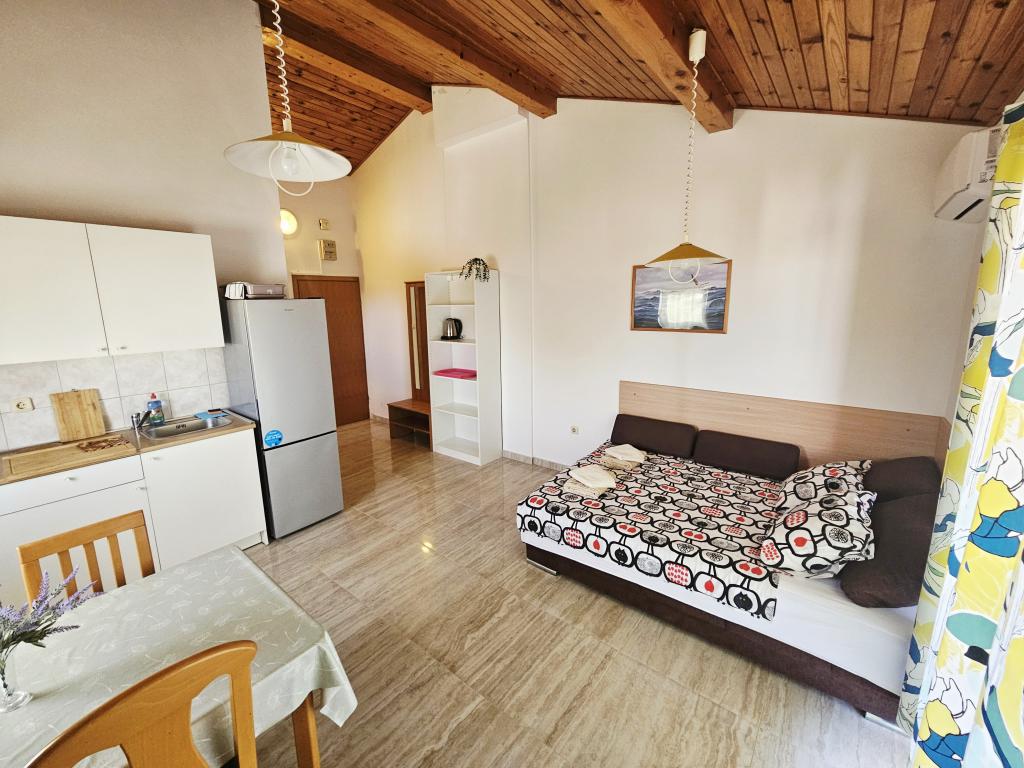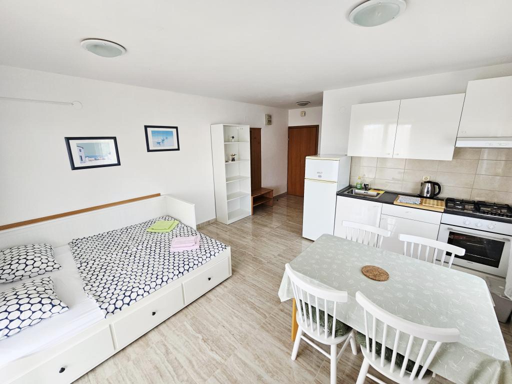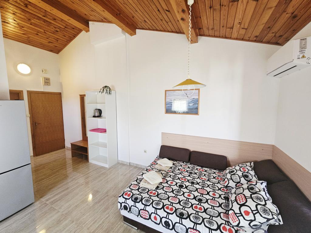 Un loc fantastic pentru a petrece o vacanță. Am stat în apartamentul A6 + 1 la parter, chiar merită să ne amintim înapoi. Un apartament spațios frumos, lângă o terasă mare în aer liber, unde am avut o vedere frumoasă la mare. Șemineu în aer liber, unde mirosea a mâncare bună. Curte mare, parcare, duș în aer liber, la câțiva pași de plajă, asta ne-am dorit. Am fost aici pentru prima dată, dar sper că nu pentru ultima dată. Proprietarii sunt foarte prietenoși și de ajutor, dacă am avea nevoie de ceva ce ne-au adus. Îl recomandăm, în special celor cărora le place să fie cât mai aproape de plajă. În apropiere se află un magazin de patiserie, unde înghețata este de cea mai bună calitate, magazin de pâine, vânzarea de fructe și legume de casă. Și altceva care contează marea limpede ca o perlă și apusuri de soare frumoase. Totul a fost de neuitat.