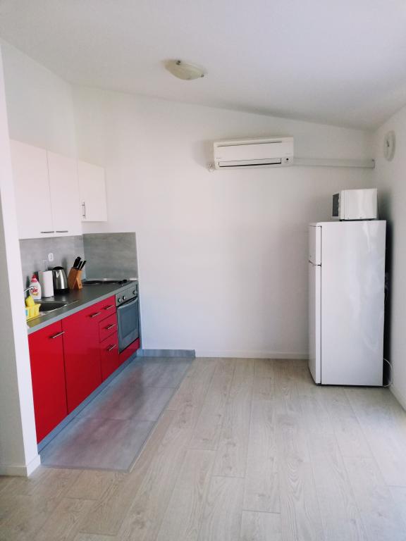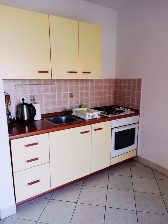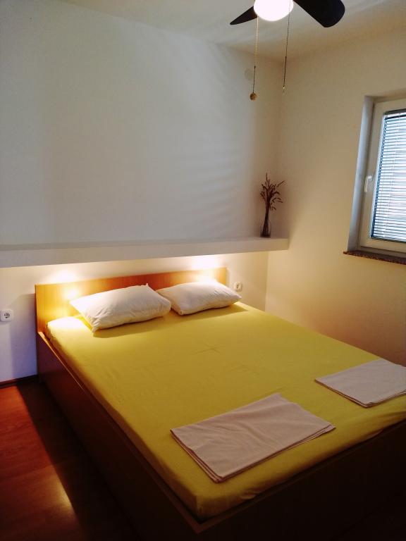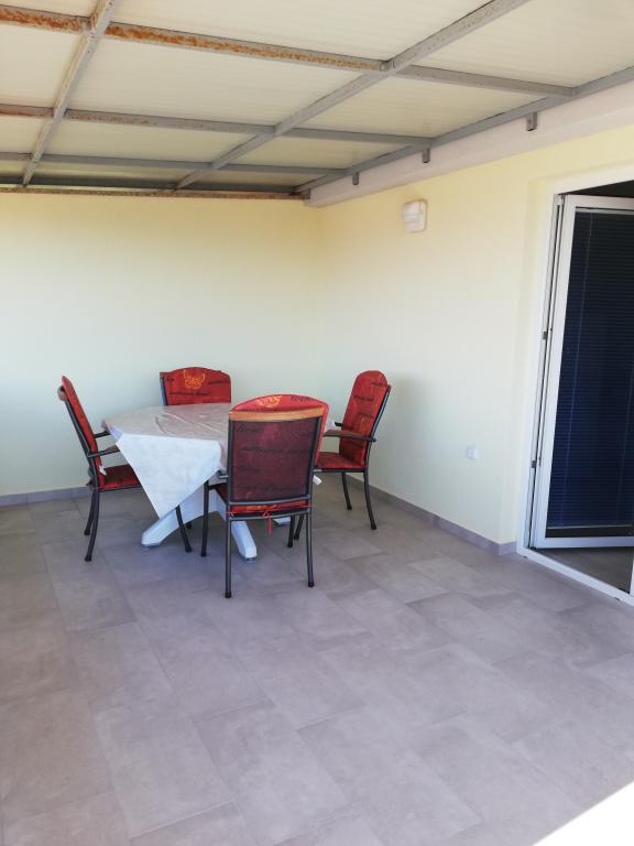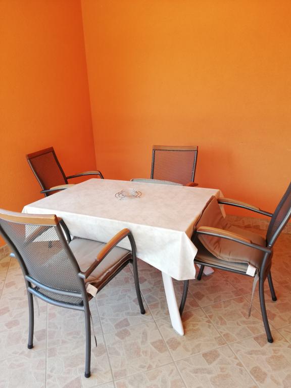 Într-un loc liniștit și familial Mandre, pe insula Pag, oferim cazare în apartamente complet echipate la doar 5 minute de mers pe jos de mare. Nu departe de casă există magazine, farmacie, bancomate, restaurante și cafenele. Pentru a vă face vacanța cât mai plăcută, gazdele stau și ele în casă și sunt mereu la dispoziția dumneavoastră. Apartamentul poate găzdui 4 persoane. Paturile sunt situate într-un dormitor și în camera de zi, la 35m2. Există, de asemenea, o terasă privată (16m2) pentru a vă bucura de serile calde de vară. Bucătăria este echipată cu un frigider / congelator combinat, chiuvetă, aragaz, cuptor, cuptor cu microunde, prăjitor de pâine și ceainic. Parcare, aer condiționat, internet, curățare finală și uscător de păr sunt incluse în prețul total. În curtea casei este permisă pregătirea mâncării folosind un grătar comun.