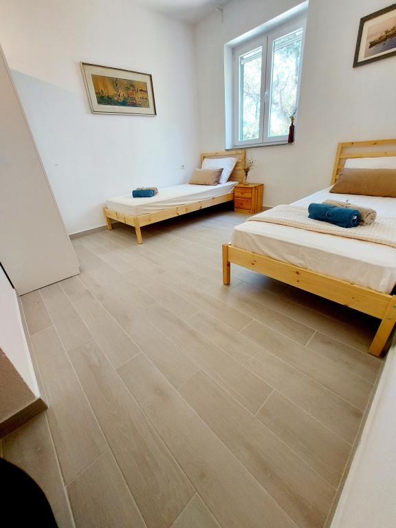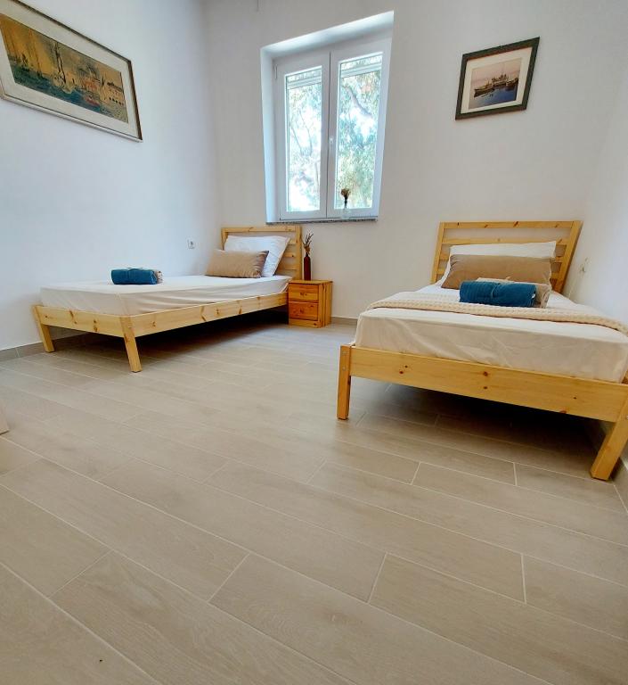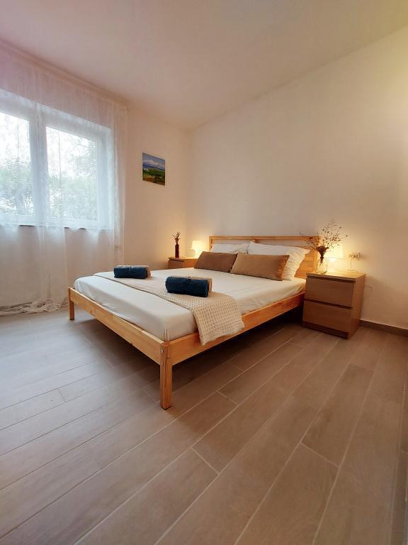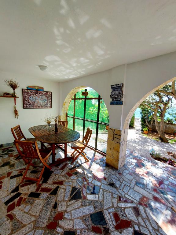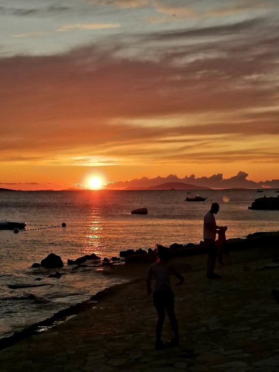 Mandre, un sat turistic și pescăresc de pe insula Pag, este situat în partea de sud a insulei, cu o priveliște frumoasă asupra insulelor Silba și Olib și a insulițelor Maun și Škrda, care sunt pline de golfuri și plaje frumoase. Casa noastră este situată în primul rând la mare, lângă o plajă cu pietriș și piatră, trebuie doar să ieșiți din curte, să traversați plaja și să înotați în marea cristalină! Apartamentele sunt complet utilate, înconjurate de o curte spațioasă cu umbră naturală. Parcarea gratuită se află chiar în fața apartamentului. Acesta este un loc minunat pentru o vacanță pentru familiile cu copii și iubitorii de natură. Mandre are o coastă adâncită, cu o promenadă lungă de 3 kilometri și plaje cu pietriș, se află la 14 km de Novalja și Zrće, la 16 km de orașul Pag și la aproximativ 60 km de orașul istoric Zadar. Cu un apus de soare frumos, miros de sare și sunetul mării, veniți și bucurați-vă de locul nostru. În curtea spațioasă este posibil să depozitați biciclete și placă de SUP pentru vâslit.
