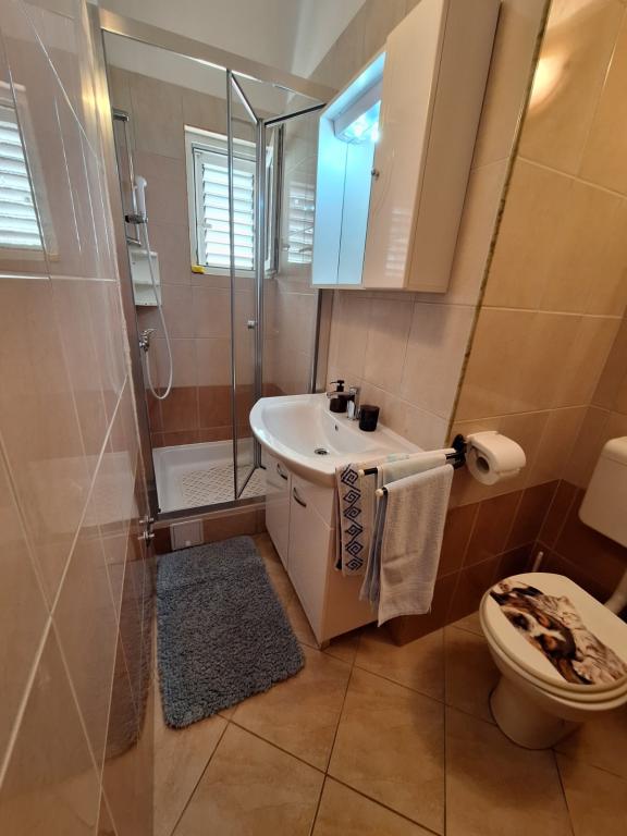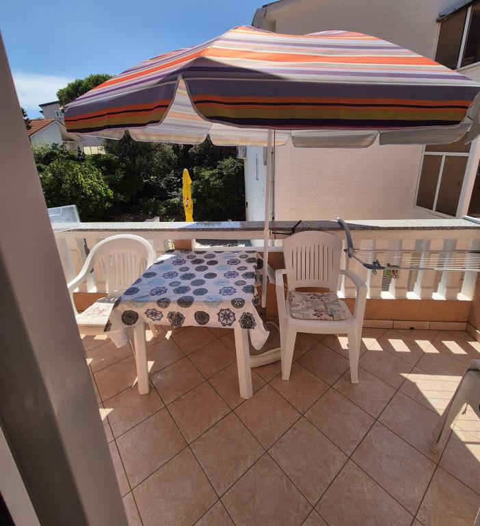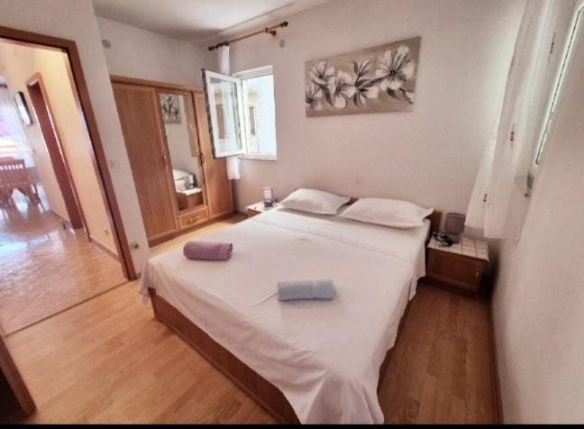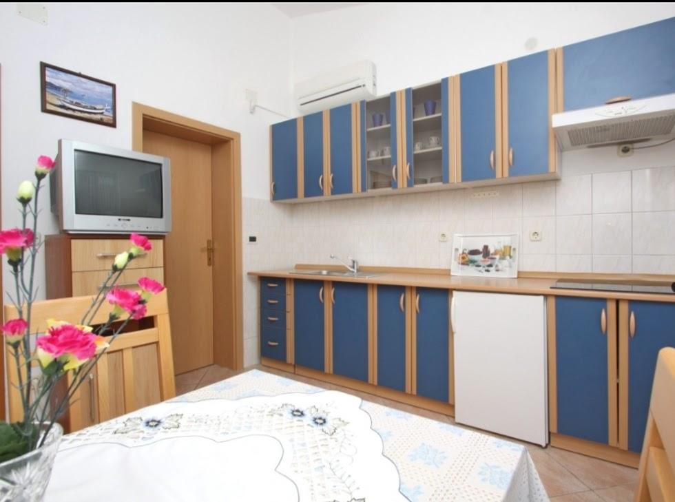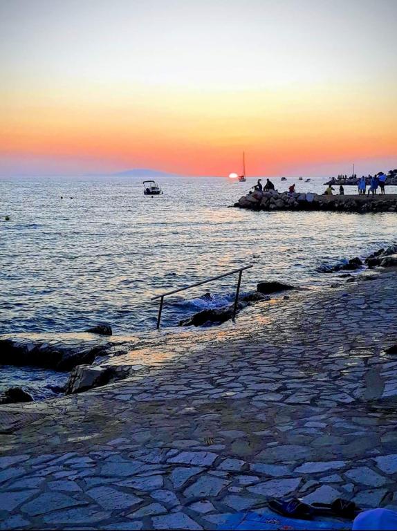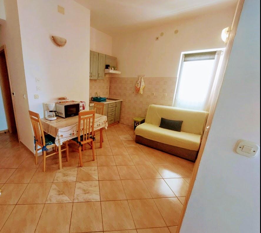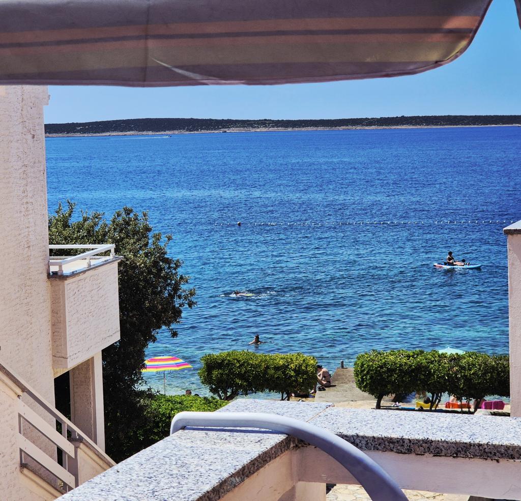 Apartamentele sunt situate în primul rând la mare. Mandre este împodobită cu o promenadă lungă de-a lungul mării, cu toate facilitățile necesare. Plajele din fața casei sunt din cărămidă, pietriș și nisip. Complexul este situat la 5 minute de mers pe jos de centru și la 10 minute de mers pe jos de magazine. Locuri de parcare sunt asigurate.
