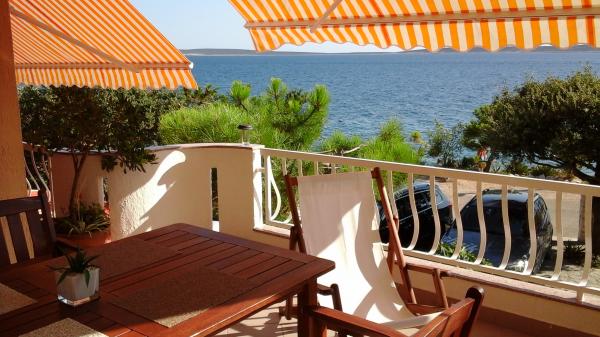Casă la 10 metri de mare, plajă în fața casei. Fiecare apartament 45m2, terasă 12m2, balcon 4m2, toate cu vedere directă la mare și insule. Parcare asigurată, grătar în curte, apă excelentă pentru băut. Marea este curată, plajele sunt frumos amenajate. Mandre este dedicat turismului de familie.