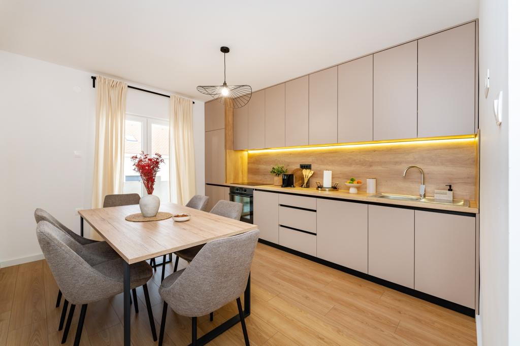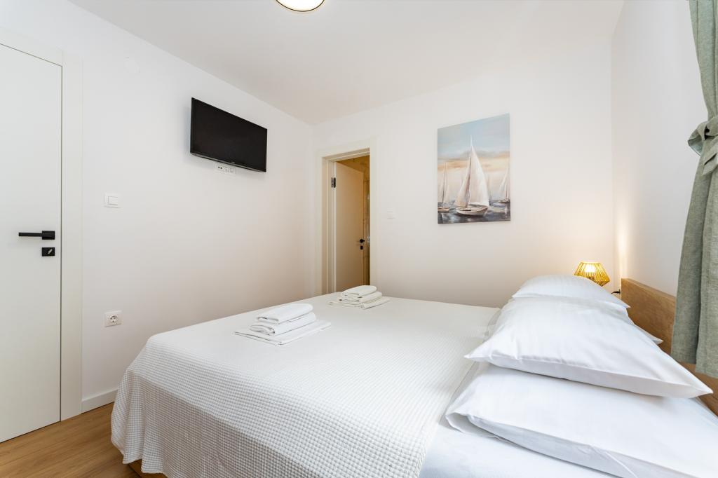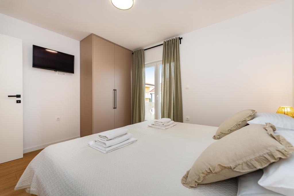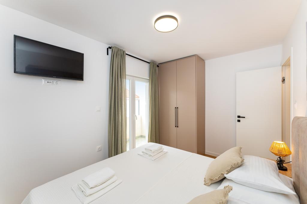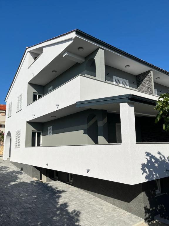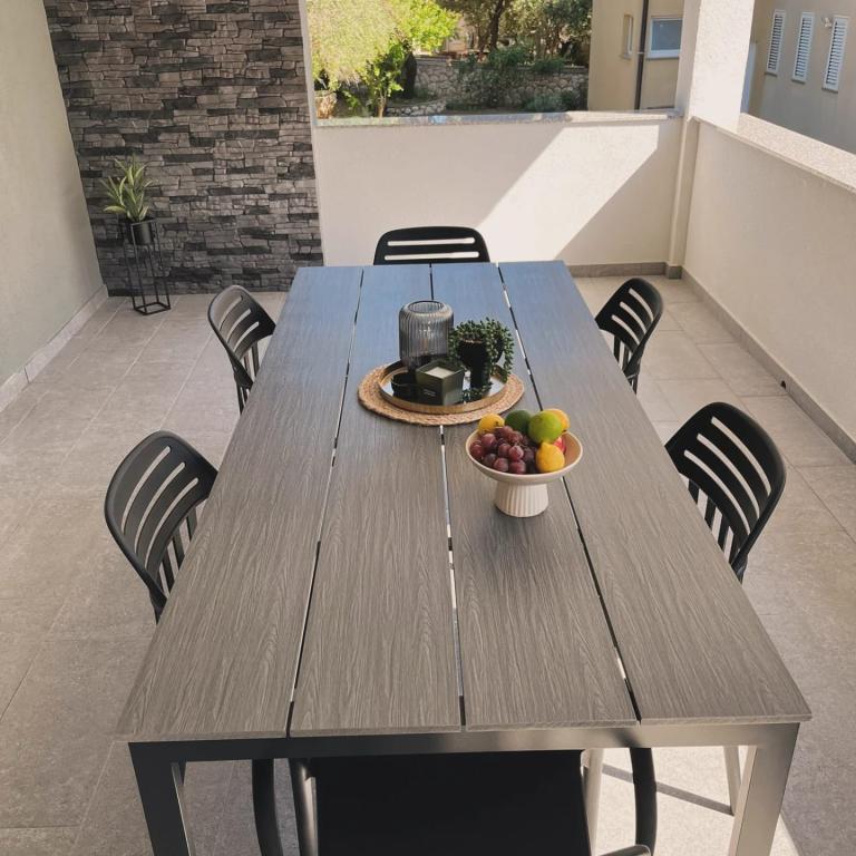 Bine ați venit la apartamentele Villa Almaris, o oază de lux situată chiar în centrul orașului Mandre, pe insula Pag. Casa noastră de familie oferă patru apartamente superb echipate și decorate, perfecte pentru relaxare și evadare din viața de zi cu zi. La doar 5 minute de mers pe jos se află magazine, o farmacie, restaurante și plaje. Vila Almaris este un loc unde eleganta se intalneste cu traditia, iar vacanta ta devine de neuitat.