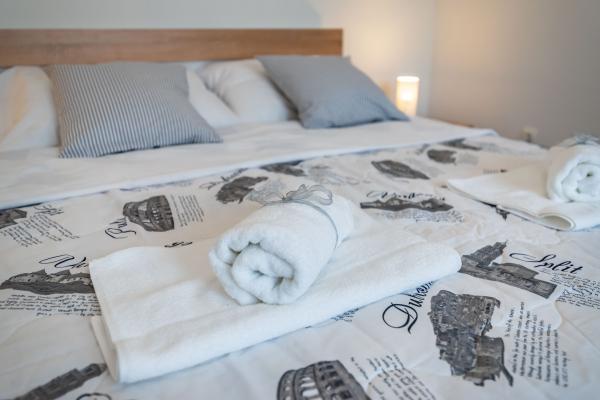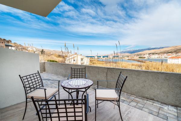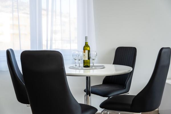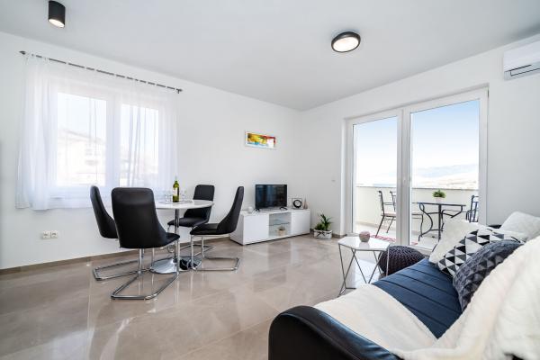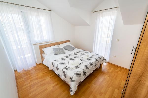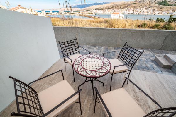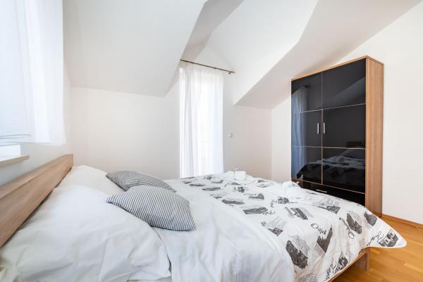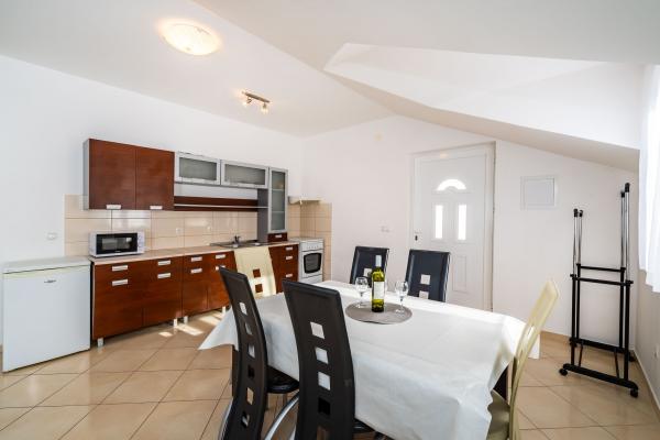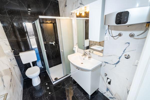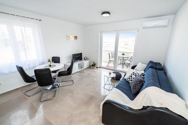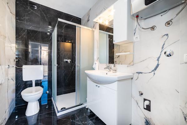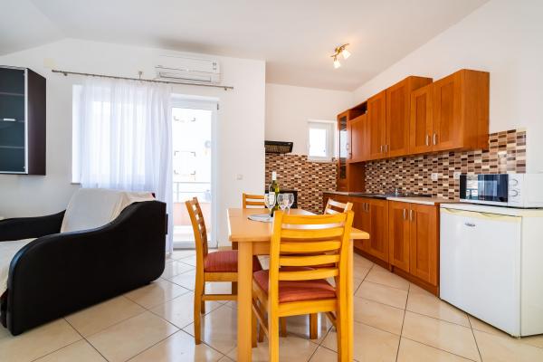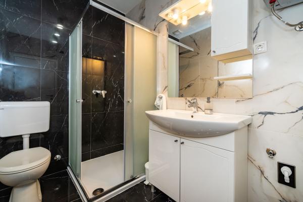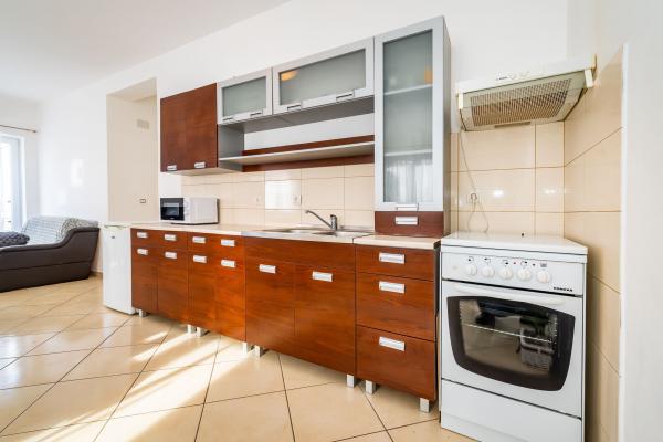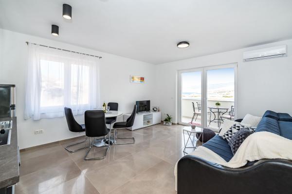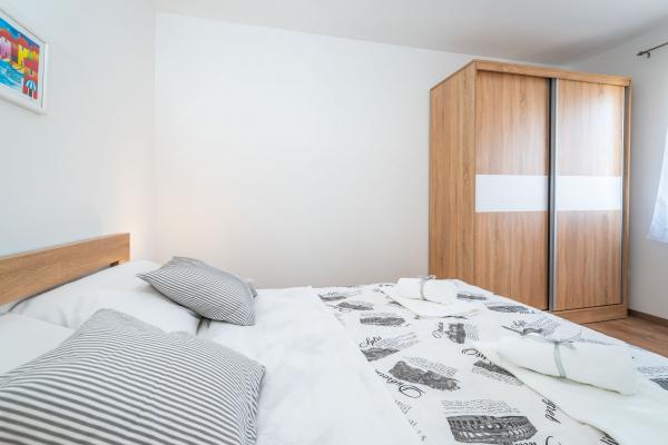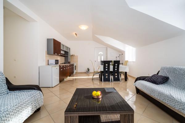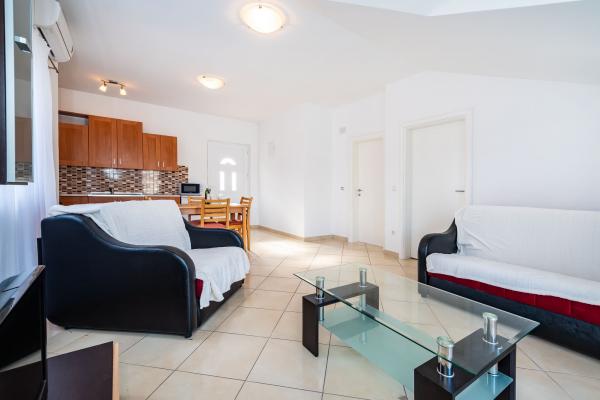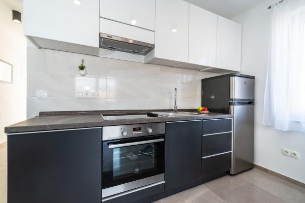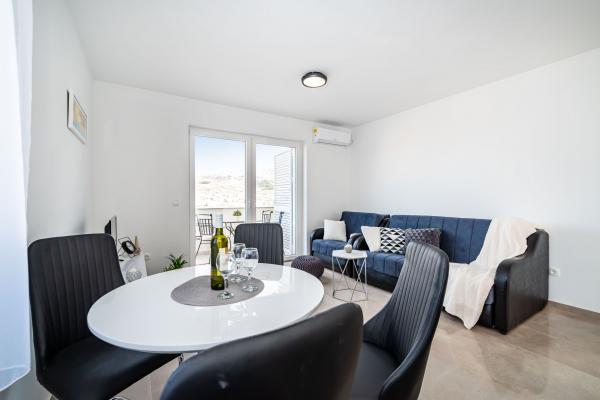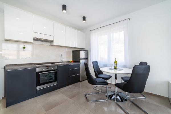 Apartamente excelente într-o locație frumoasă, cu vedere la mare și la oraș. Dotată complet cu tot conținutul necesar, parcare pentru mașini, wi-fi, tot ce ai nevoie pentru o vacanță plăcută. 7 minute de plajă, 10 minute de centrul orașului și restaurante. Cel mai apropiat magazin este la 5 minute de mers pe jos, totul este disponibil în 10 minute de mers pe jos. Apartamentele 1 - 6 sunt situate într-o singură clădire și sunt complet identice. Trei apartamente sunt la parter (1 la 3) cu terase mari. Trei apartamente sunt la primul etaj. Toate au vedere la mare. Apartamentele 7 și 8 sunt situate la etajul 1 al celui de-al doilea bloc, care este situat chiar lângă prima clădire. Toate apartamentele sunt mobilate modern, iar oaspeții au la dispoziție tot ce le trebuie, inclusiv cuptor cu microunde, frigider, wi-fi, ceainic, ustensile de gătit, prosoape... Există un grătar cu masă și scaune pentru socializare.