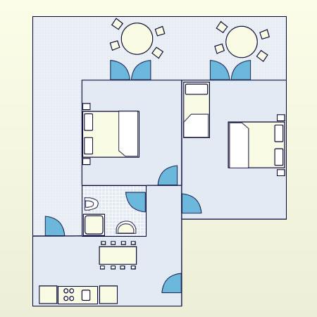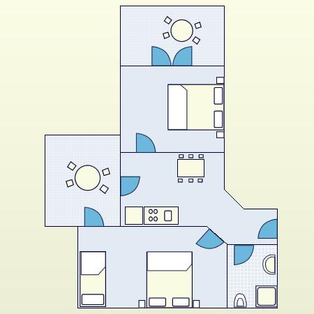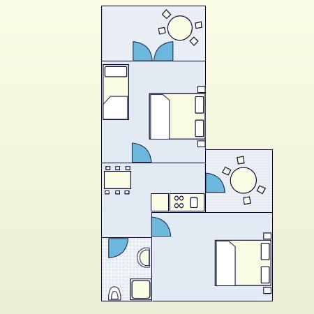 Apartament pentru două persoane, cu două paturi suplimentare (50 m2)