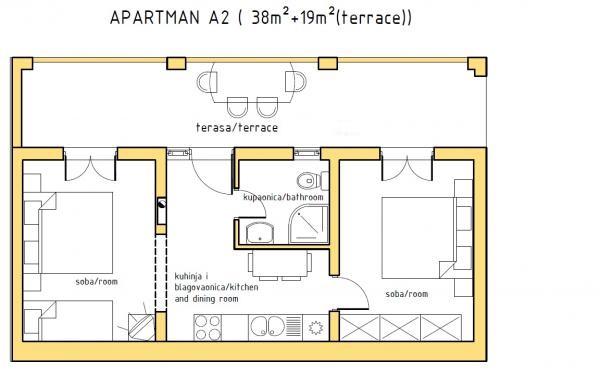 Apartamentele Capo decorate și echipate sunt situate pe insula Pag, într-o zonă liniștită din Pag. Situate la doar 1500 m de centrul orașului, acestea oferă o priveliște frumoasă asupra golfului Pag și oferă liniștea și securitatea necesară pentru restul dvs. și familiei dumneavoastră. În apropierea apartamentului există multe plaje frumoase cu nisip și pietriș, la doar 5 minute de mers pe jos. Apartamentele au 2 dormitoare, bucătărie cu zonă de luat masa, baie cu duș și toaletă și o terasă mare cu vederi frumoase. Apartamentele sunt dotate cu TV prin satelit, aer condiționat și internet WIFI gratuit. Fiecare apartament are propria sa parcare gratuită.