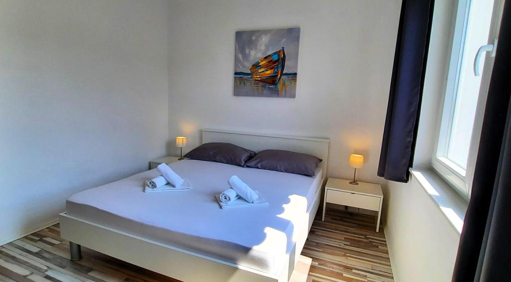 Bine ați venit la Dalona Apartments! Situate la doar câteva minute de centrul istoric al orașului Pag, Dalona Apartments oferă combinația perfectă între confort, design modern și caracter practic. Fiecare apartament este complet echipat și ideal pentru familii, cupluri sau prieteni care doresc să se bucure de o atmosferă autentică a insulei. Transferul de la/la aeroport este disponibil la cerere.