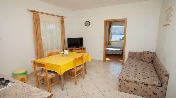 Într-o zonă liniștită a orașului Pag, la 160 m de plajă, la 200 m de restaurant, închiriem apartamente mobilate modern, cu terase mari cu vedere la mare. Apartamentele au parcare păzită, sunt climatizate și au acces la internet WiFi.