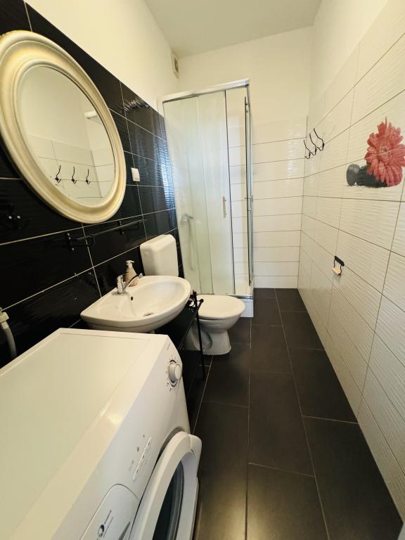 Sejur foarte placut si vedere superba de la balcon. Tot ce ai nevoie, bucătărie utilată, mașină de spălat vase, frigider mare cu congelator, aer condiționat, masă, obloane pentru vreme caniculară. Martina vorbește foarte bine engleza și înțelege și poloneză, Îl recomandăm și îl amintim cu drag