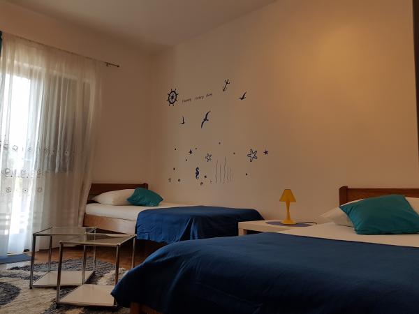 Apartamentele Luna sunt situate la 20 de metri de plajă și mare și la 5 minute de mers pe jos de centrul orașului. Există șapte apartamente recent renovate și parcare privată gratuită în curtea închisă, care este prevăzută pentru toate apartamentele. Grătarul și curtea mare ne oferă posibilitatea de a socializa și, dacă este necesar, veți fi pregătiți să pregătiți o masă delicioasă de pește sau carne. În jurul proprietății există o curte potrivită pentru depozitarea în condiții de siguranță a prosoapelor dvs. de plajă. Îmi face plăcere să mă prezint ca gazdă a apartamentului Luna. Suntem o familie care sa angajat în turism timp de 40 de ani. Împreună cu familia mea, încerc să ofer oaspeților noștri o vacanță plăcută și să rămân la serviciul lor non-stop, pentru că satisfacția lor este plăcerea noastră. Cartierul este liniștit, liniștit și perfect pentru a rămâne cu familiile cu copii. Magazinele, restaurantele, promenada de mare și parcul pentru copii sunt la 50-100 de metri distanță. Golful Paska este potrivit pentru toate tipurile de sport pe mare, în timp ce în jurul întregului golf se întinde până la 23 de kilometri de plaje de nisip frumoase,