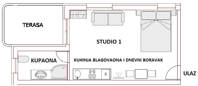 Garsoniera este curată și ordonată. Tot ce aveam nevoie în bucătărie era în echipament. Gazde foarte amabile. Este aproape de mare și de centrul orașului Pag pentru a ieși seara. Garsoniera ar trebui să fie o garsonieră cu 2 camere, dar dacă cineva merge cu un copil, poate fi rezervată și fără probleme. Aș recomanda cu căldură.