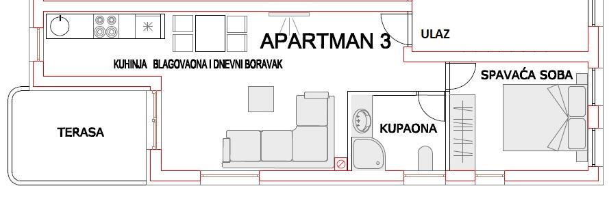 Oferim trei apartamente aflate la doar 3 minute de mers pe jos de centrul orașului Pag și la 6 minute de mers pe jos de plajă. Toate cele trei apartamente sunt decorate recent și modern, au aer condiționat inclus în preț, TV, SAT, wi fi, bucătărie utilată, dormitor, baie. Au un pat dublu și o canapea extensibilă, iar dvs. puteți obține un pat suplimentar. Parcarea este oferită, iar grătarul este la dispoziția dumneavoastră.