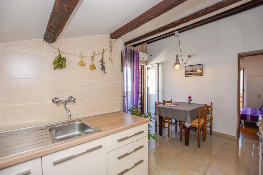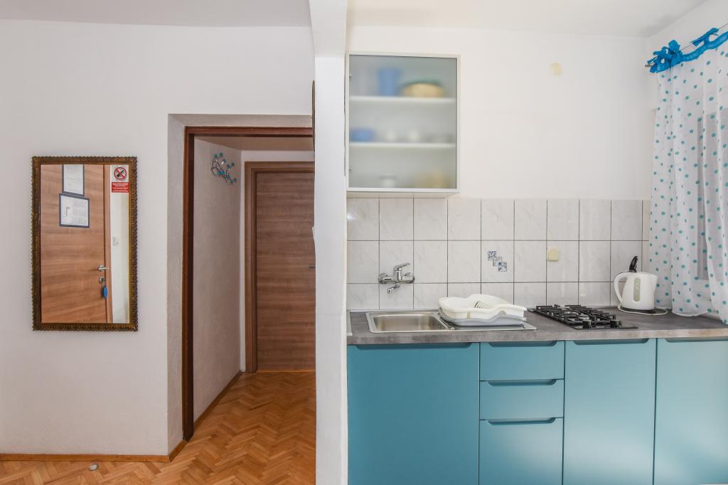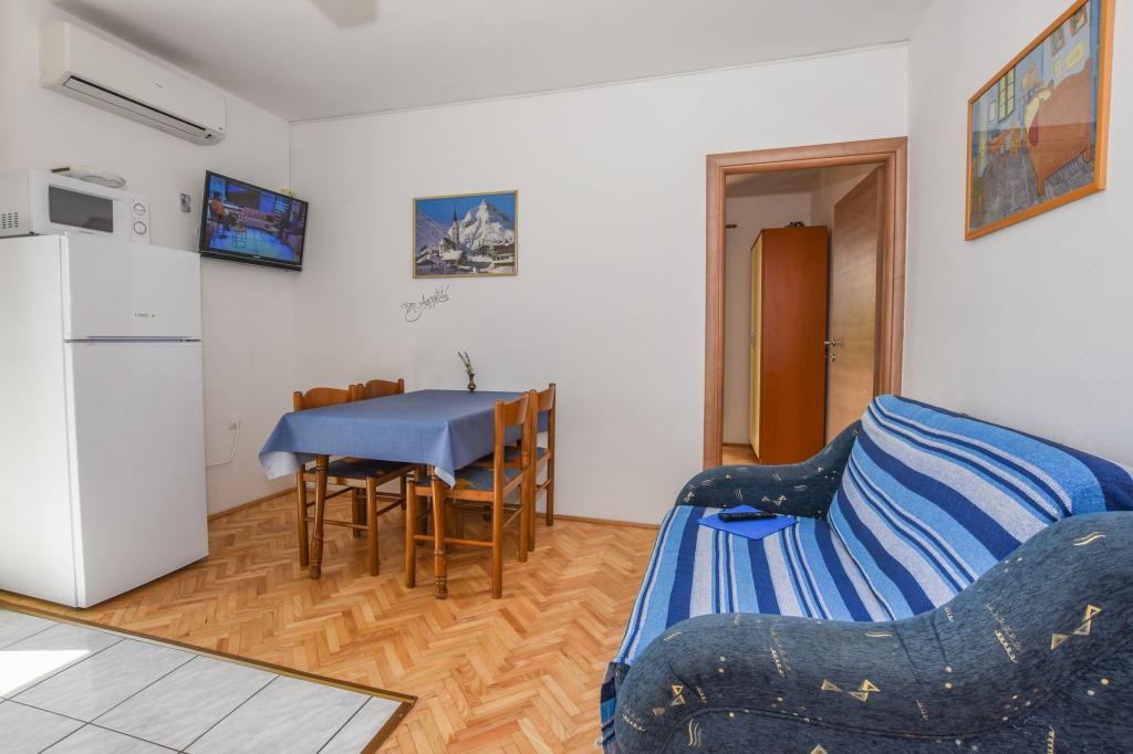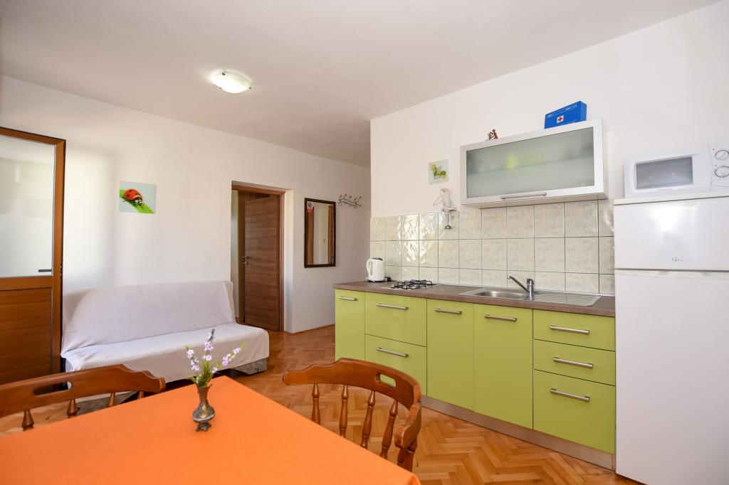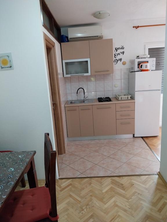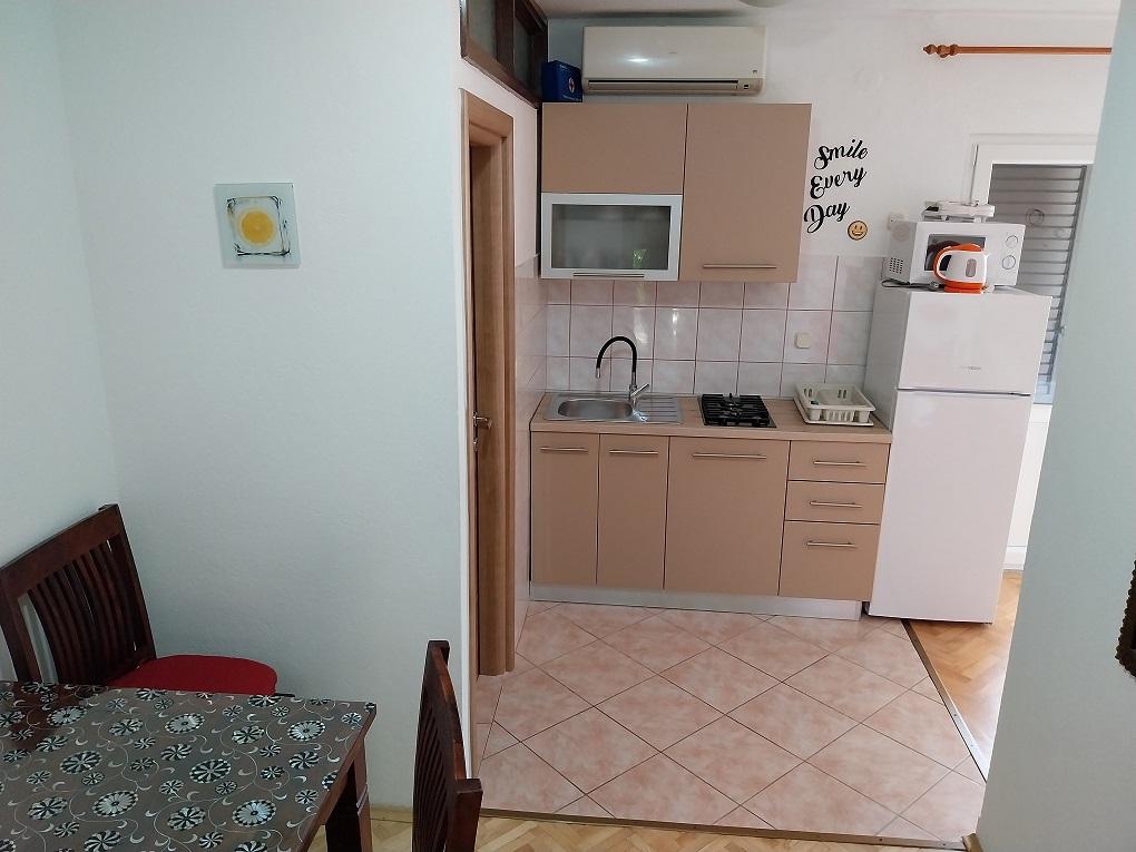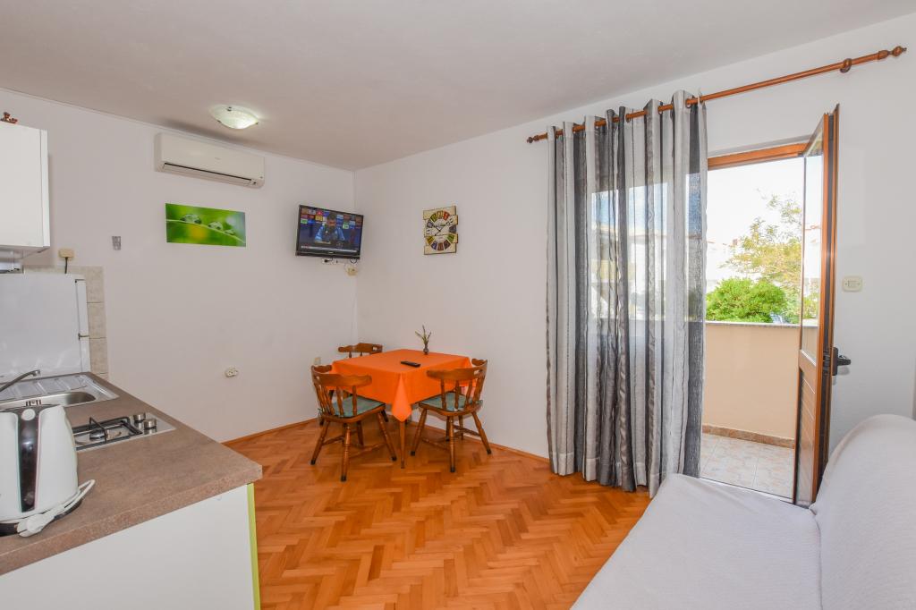 Recomandat! Apartament spațios / studio / pregătit pentru noi, curat, parfumuri și prosoape curate, pretutindeni. Fotografia nu mai corespunde noii realități. Frigider nou, cu congelator separat, aragaz cu gaz / fără cuptor de coacere / noul televizor LCD plat. Locație excelentă, piață bine aprovizionată chiar sub terasă. Plaja mai mica este de aproximativ 60m, dar pentru copii este mai convenabil / cca 400m / plaja de nisip din oras cu intrare treptata la apa si in special NABOSO! Plajă cu toate echipamentele necesare: Sanie și snack foarte rapid, înghețată, cafenele, restaurant, tot ce aveți nevoie. În oraș, o piață mare ... cu mâncăruri proaspăt pregătite la un preț scăzut. Genți rotunde de seară, mașini, trambuline, castel bouncy, piețe ... Parcare privată, foarte spațioasă, la 50 m de casă. Împrejurimile vilei sunt destul de liniștite, terasa mare este la umbra, care a fost foarte cool. Nu trebuia să închidem deloc. Plaja are nevoie de o umbrelă, bazată pe apă, pentru o familie cu patru membri cel puțin două! Perioada de vacanță foarte plăcută, cu cazare excelentă și totul la mică distanță. Îmi place să mă întorc. Saluturi doamnei de acasă, fotbalul croat, vreau să câștig! Vladislav