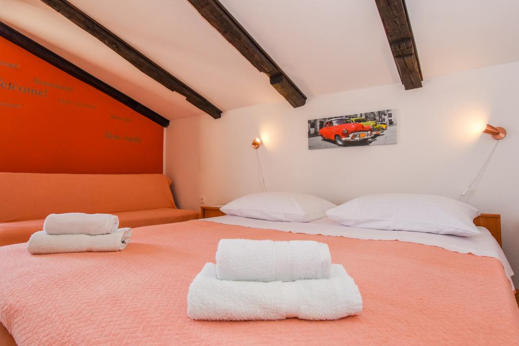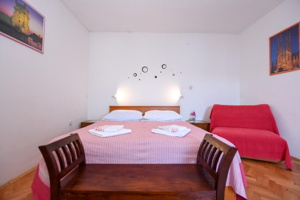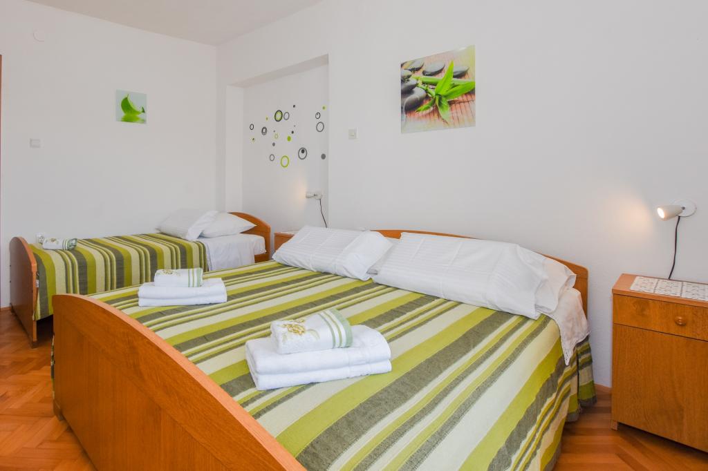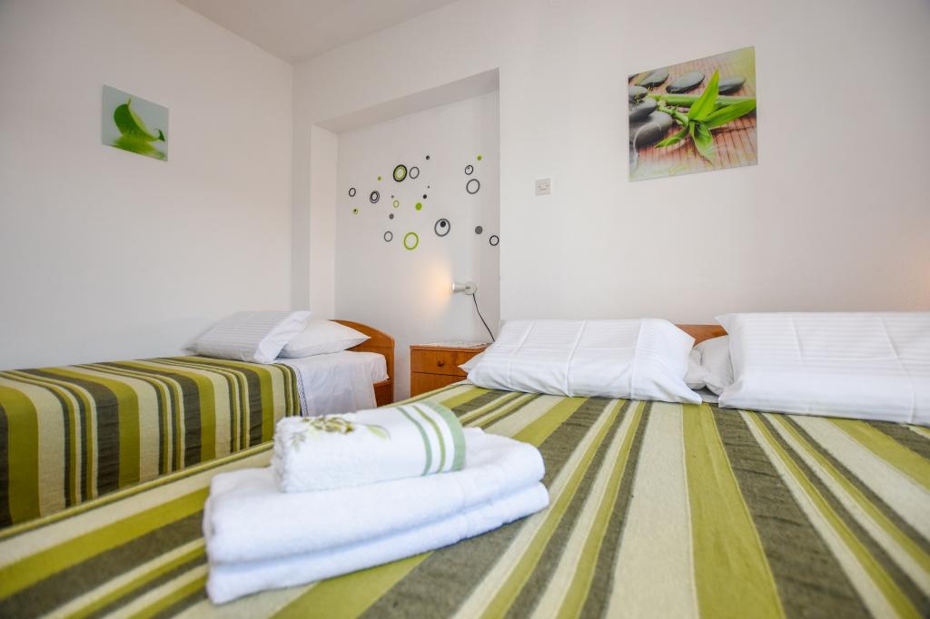 Foarte frumos,, proprietarii de ajutor prietenos. Foarte bine de contact. Cameră - curate, bine întreținute, mare, foarte bine echipata (frigider, aragaz, vesela, tacamuri, vase, uscător de păr, umbrela pe plaja, bun venit foi cu miros si prosoape curate). Vedere frumoasă de pe terasa si balcoane. Garantat un loc de parcare la aproximativ 100 de metri de plajă mică În apropierea casei. Frumos, oraș fermecător. Această zonă are o mulțime de locuri de explorat. Atât noi și copiii au fost foarte fericiți și încântați Croația. Vă recomandăm!