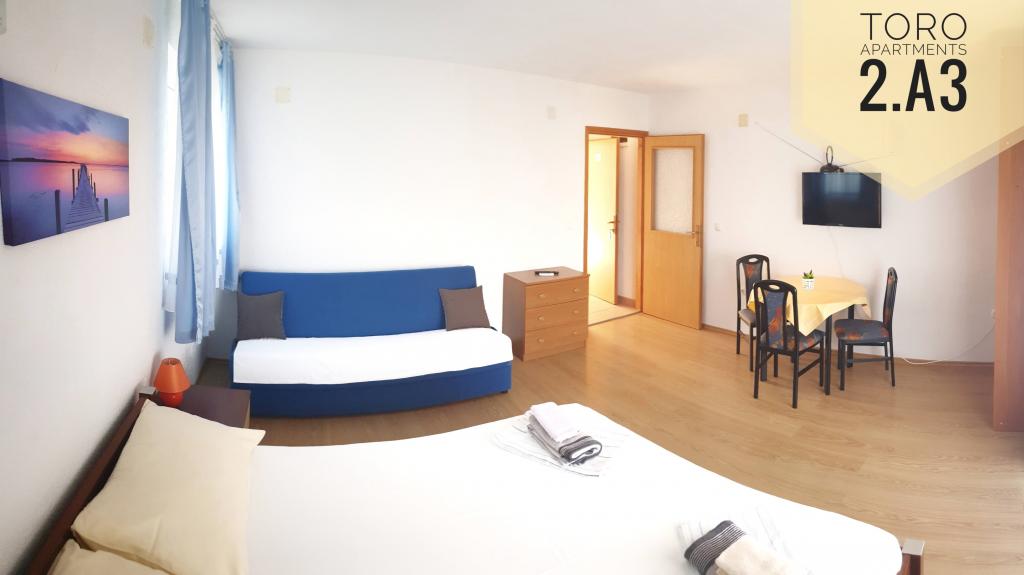 Descoperiți farmecele orașului și ale insulei Pag! Pe lângă cazarea confortabilă, Pag oferă o multitudine de activități și atracții pentru o vacanță de neuitat. Închiriați o barcă și explorați golfuri și plaje ascunse, bucurându-vă de libertatea navigării pe apele cristaline ale Mării Adriatice. Alăturați-vă excursiilor organizate și descoperiți frumusețea naturală și obiectivele culturale ale insulei, cum ar fi Salina Pag, bisericile istorice și muzeele, sau faceți drumeții pe dealurile din jur. Pag este cunoscut pentru festivalurile și evenimentele sale de vară, unde vă puteți bucura de concerte, evenimente culturale și o viață de noapte animată. Nu ratați ocazia de a gusta brânza Pag, faimoasă în întreaga lume. Relaxați-vă pe plaje frumoase sau explorați traseele de ciclism. Bucurați-vă de delicii gastronomice în restaurantele și tavernele locale, unde peștele proaspăt, fructele de mare și bucătăria locală vă vor încânta. Experimentați Pag în cel mai bun mod!