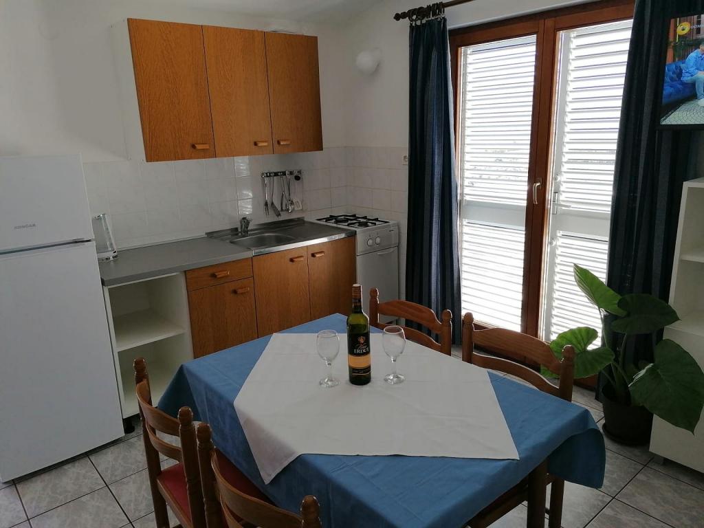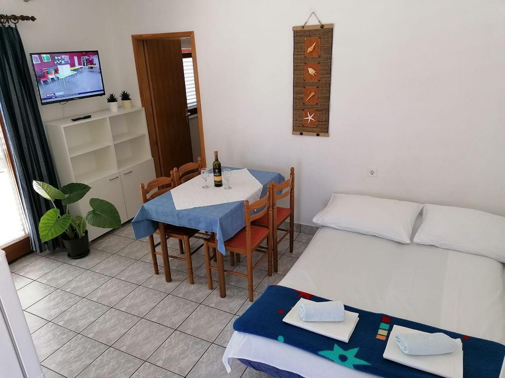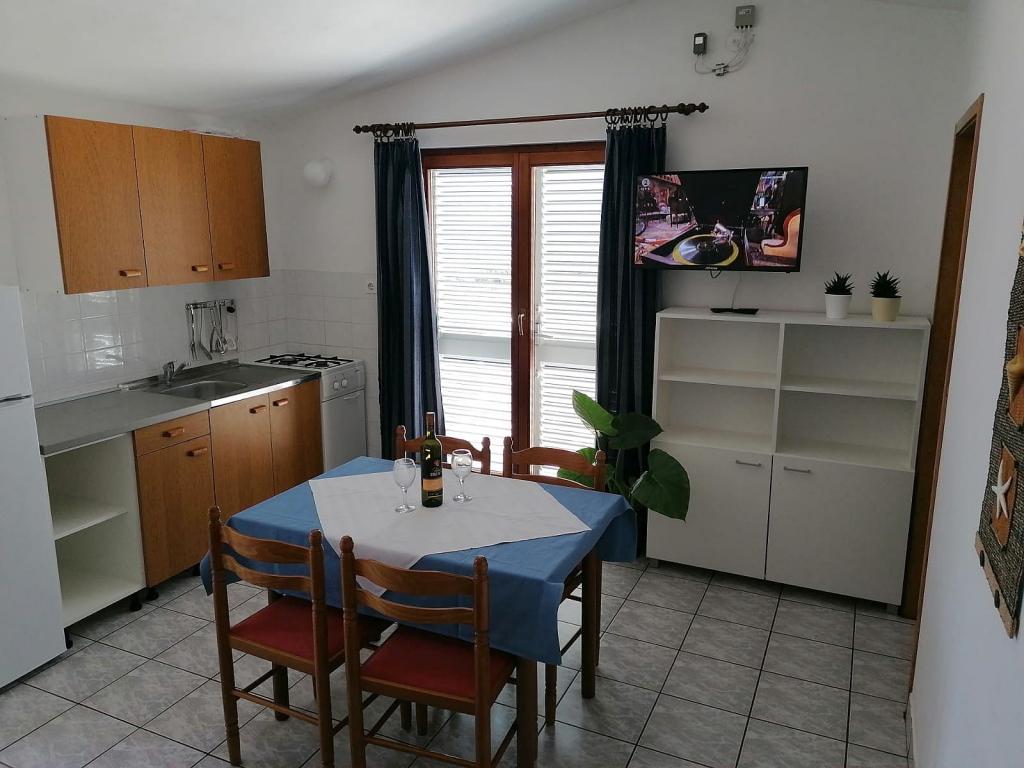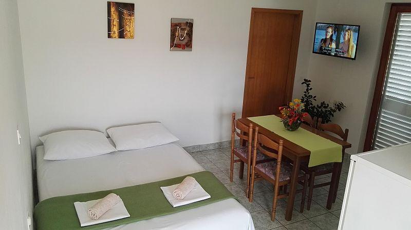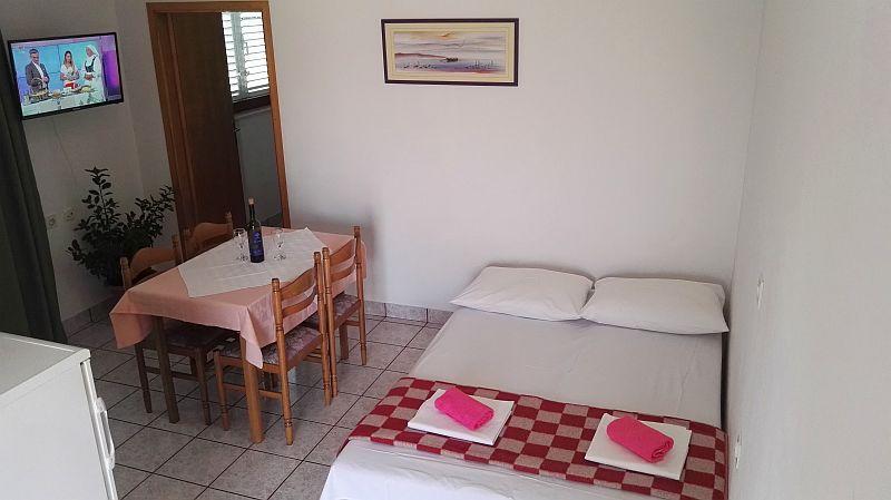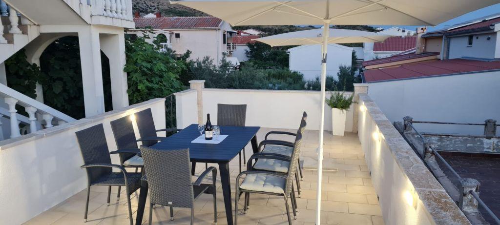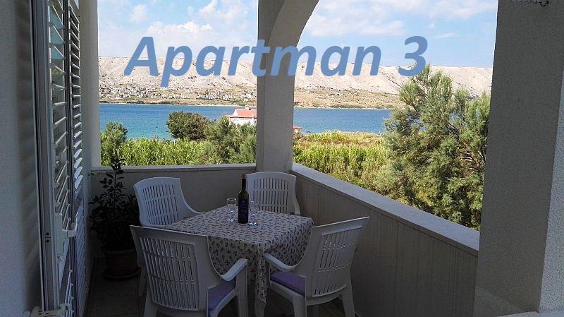 Apartamentele sunt situate în orașul Pag, într-o stațiune turistică Bašaca, la 100 m de plajă. Apartamentele au parcare securizată, utilizarea gratuită a climei și accesul gratuit la Wi-Fi. Avem cinci apartamente A3 1 unde oferim cazare pentru 2-4 persoane. În apartament există un dormitor cu 2 paturi, un living cu un pat extensibil pentru două persoane și o bucătărie complet utilată, o baie cu duș și o terasă cu vedere la mare. Toate apartamentele sunt complet echipate: tv, aer condiționat, frigider, grătar, lenjerie de pat, prosoape, tacâmuri.