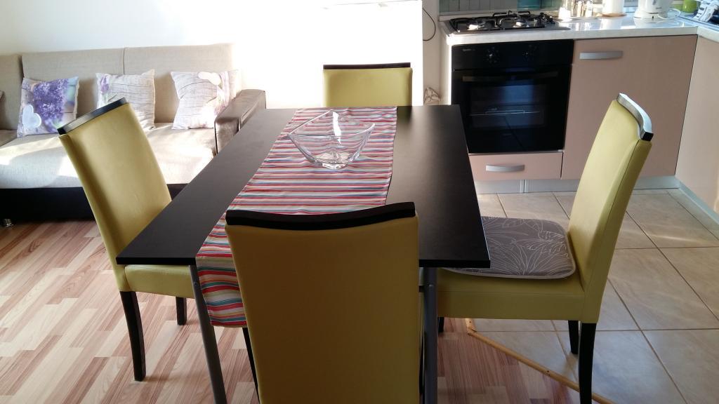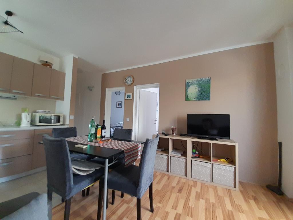 Apartament cu 3 camere complet utilat intr-o zona linistita. Terasă mare și balcon cu vedere la mare. Posibilitatea folosirii gratarului in gradina. Loc de parcare securizat la umbra.