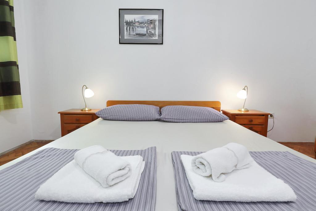 Apartament confortabil, mobilat în stil Dalmațian, situat în centrul orașului Pakostane, la 30 de pași de mare. De la balconul și ușa unei camere există o vedere frumoasă la mare și tot ce ai nevoie în timpul vacanței (magazin, bancă, poștă, restaurante etc.) se află la maximum 10 minute de mers pe jos de apartament. Tot ce trebuie să faceți este să vă bucurați de fijac-ul dalmatic și să vă odihniți trupul și sufletul.