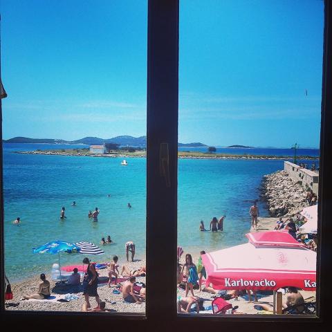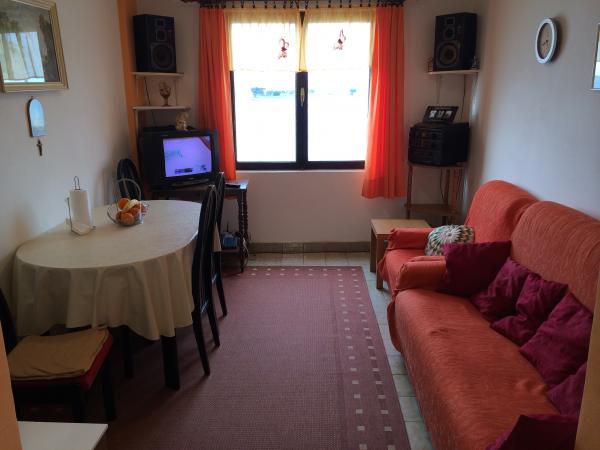 Apartamentul este situat pe principala plajă Janica, primul rând la mare cu vedere la mare și insula Sv. Justina. La bagajele dvs. se află un mic bistro unde puteți servi micul dejun în timp ce vă bucurați de vedere la mare. Apartamentul are 2 dormitoare, 1 baie, bucatarie si living cu pat suplimentar. O terasă cu o masă vă puteți bucura în timp ce luați masa și vegheați la mare, la plajă. Apartamentul este situat la primul etaj. În Pakoštane avem o piață de pește, câteva magazine, o vinărie, o piață de legume și legume, magazin de suveniruri, caiace, volei pe plajă, navigație, excursii cu barca la parcul național Kornati, parcul acvatic pentru copii, un tren pentru copii. În locul în care avem plaje diferite, nisipoase, stâncoase, stâncoase și betonate.