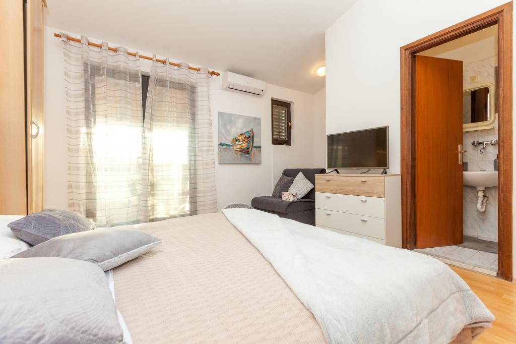 Bine ați venit la apartamente Miro! Apartamentele noastre sunt situate într-o parte liniștită a orașului, nu departe de centrul orașului Pakoštane. Este nevoie de 5 minute pentru a merge pe jos până la frumoasa plajă și centru. Cazarea este ascunsă pe o stradă aglomerată, așa că dacă aveți copii vă puteți bucura de mediul nostru fără teamă. Lângă apartamentele din grădina noastră mare există un șemineu unde puteți pregăti o masă delicioasă. De asemenea, în apropierea șemineului vă stă la dispoziție o grădină cu legume neprețuite (roșii, castraveți, ardei ...). În fața apartamentului sunt locuri de parcare securizate. Oriunde stai, îți dorim o zi plăcută și frumoasă de vară!